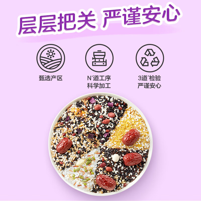 红枣小米粥、八宝粥、紫薯黑米粥、绿豆百合粥、银耳燕麦紫薯粥、红豆薏米粥、红枣莲子黑糯米粥(各3袋)