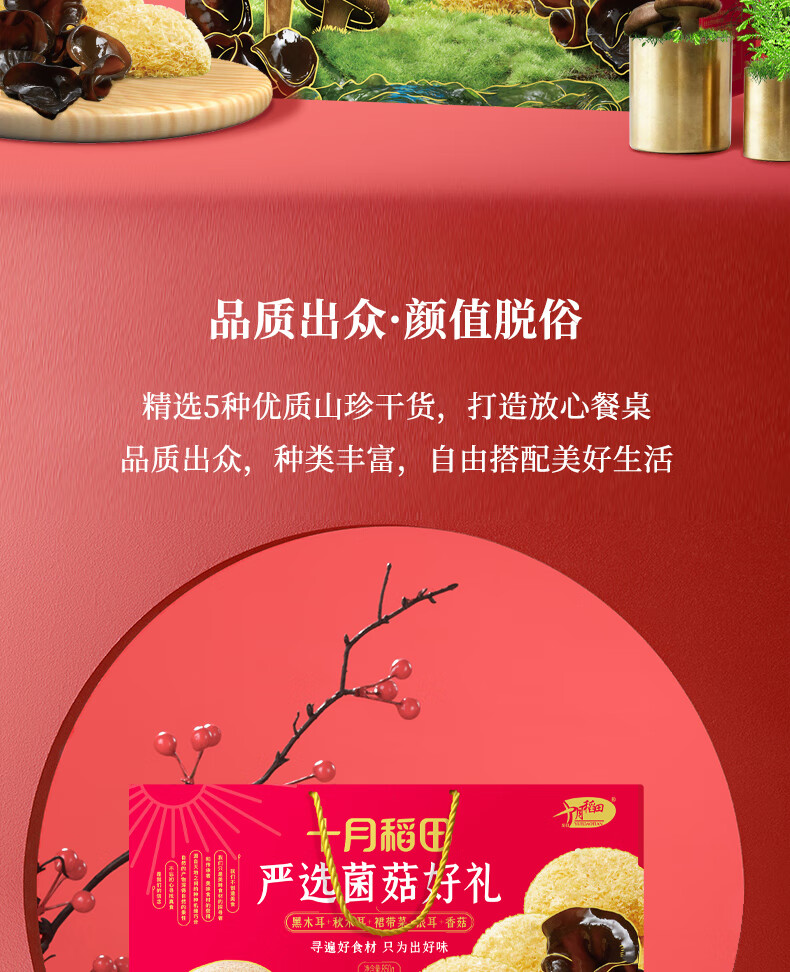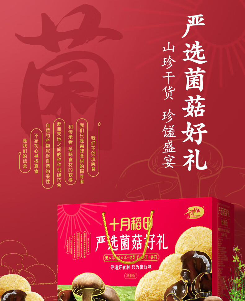 商品名称:十月稻田 严选菌菇好礼 礼盒 850g