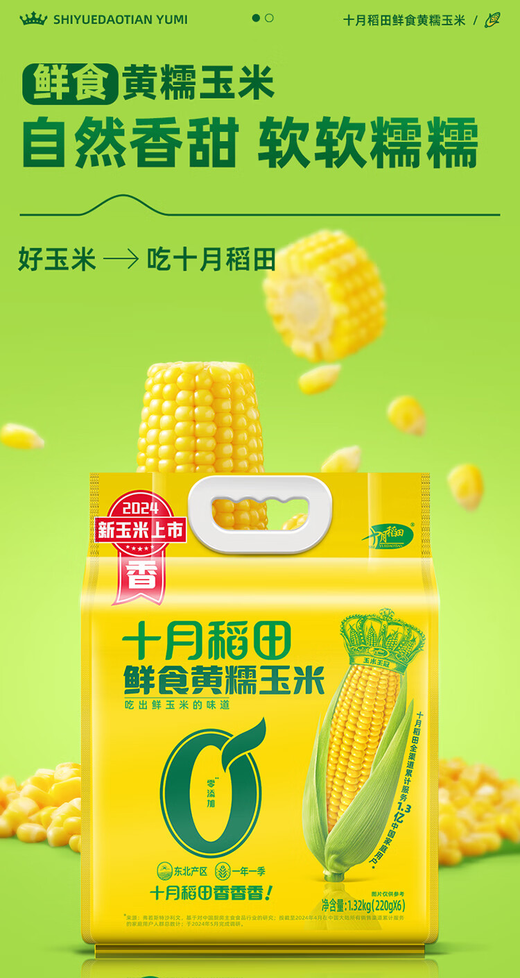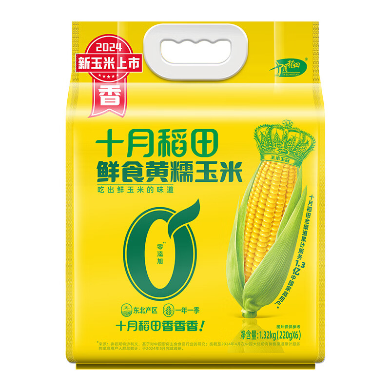 商品名称:十月稻田 鲜食黄糯玉米 1.32kg(220gX6)