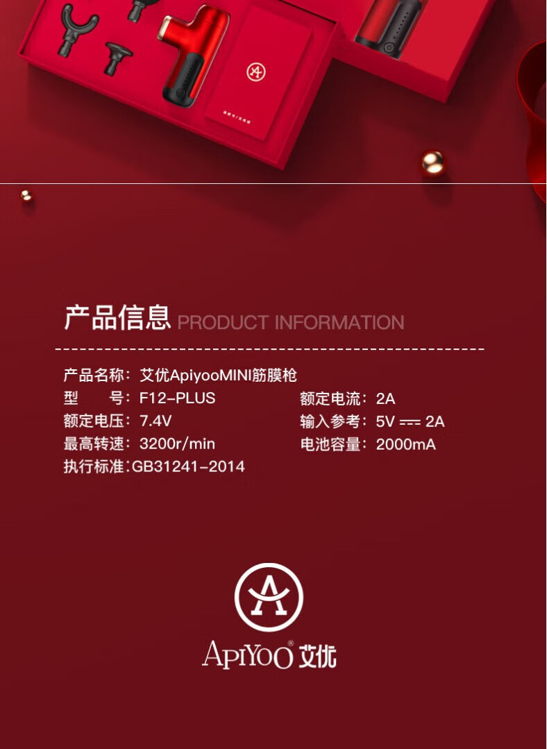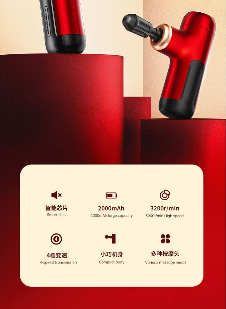 商品名称:艾优 Mini筋膜枪 F12-Plus 红色