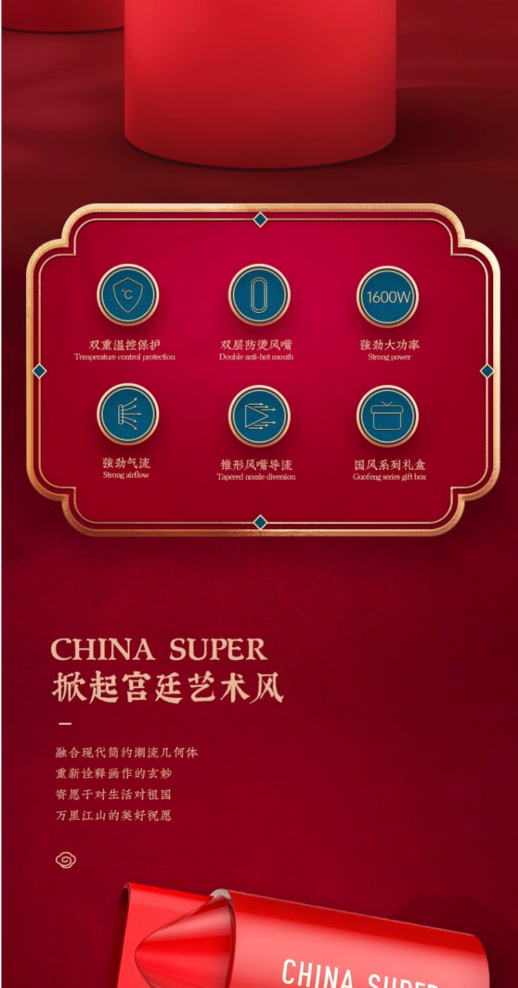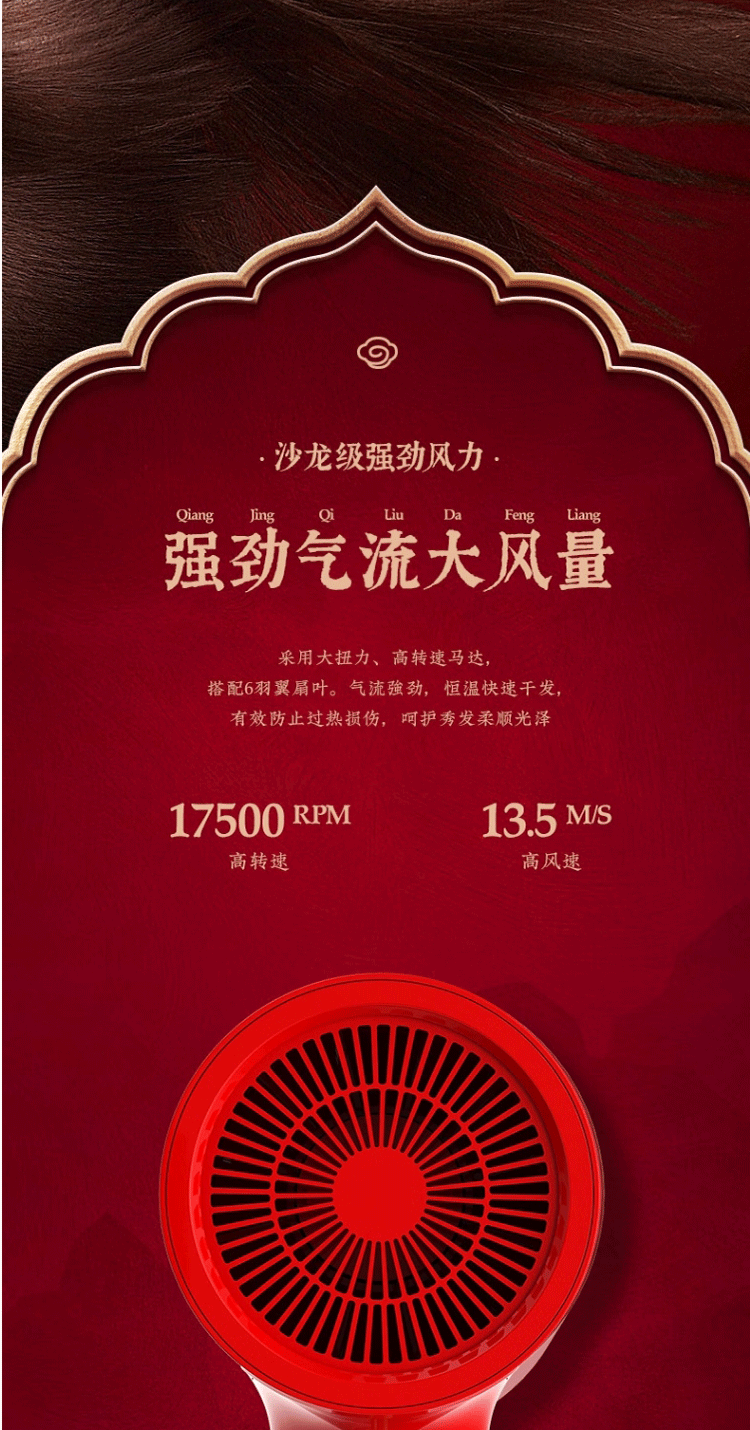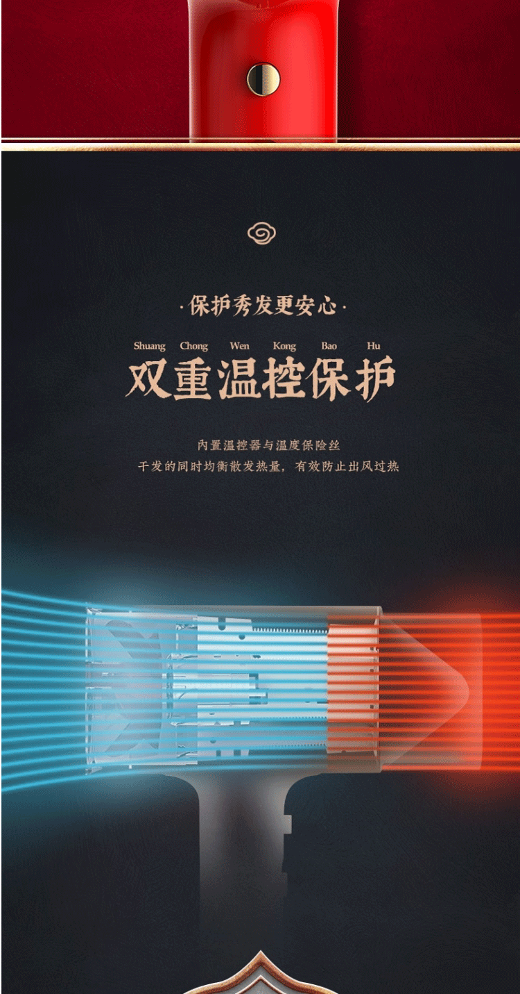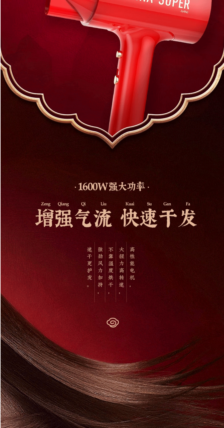 商品名称:艾优 国风负离子吹风机 GF3 红色