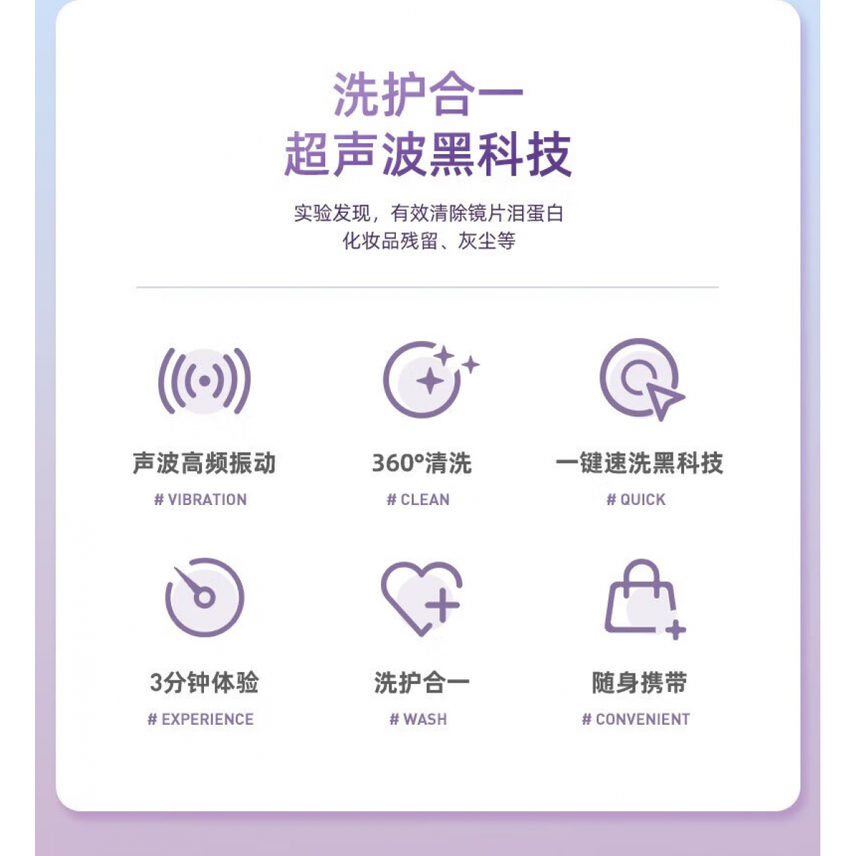 包装清单 :隐形眼镜清洗盒+镊子吸棒+双联眼镜架+充电线+收纳袋+说明书