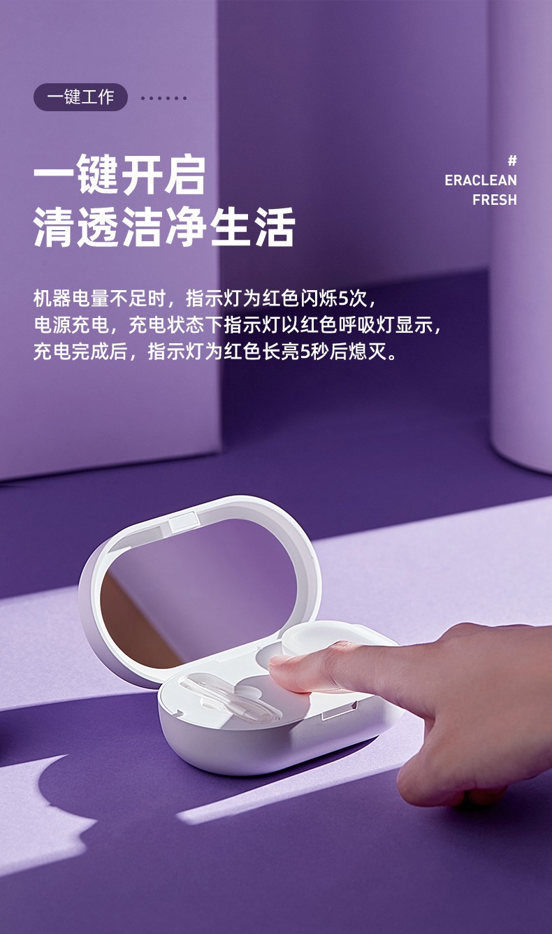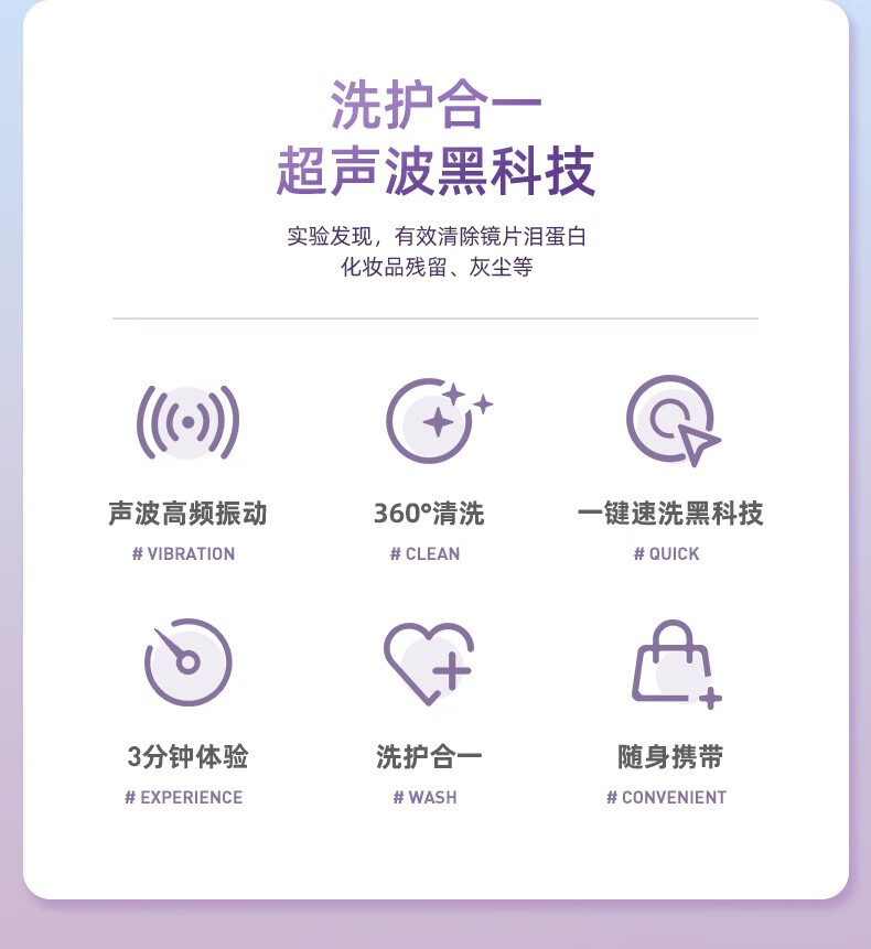包装清单 :隐形眼镜清洗盒+镊子吸棒+双联眼镜架+充电线+收纳袋+说明书