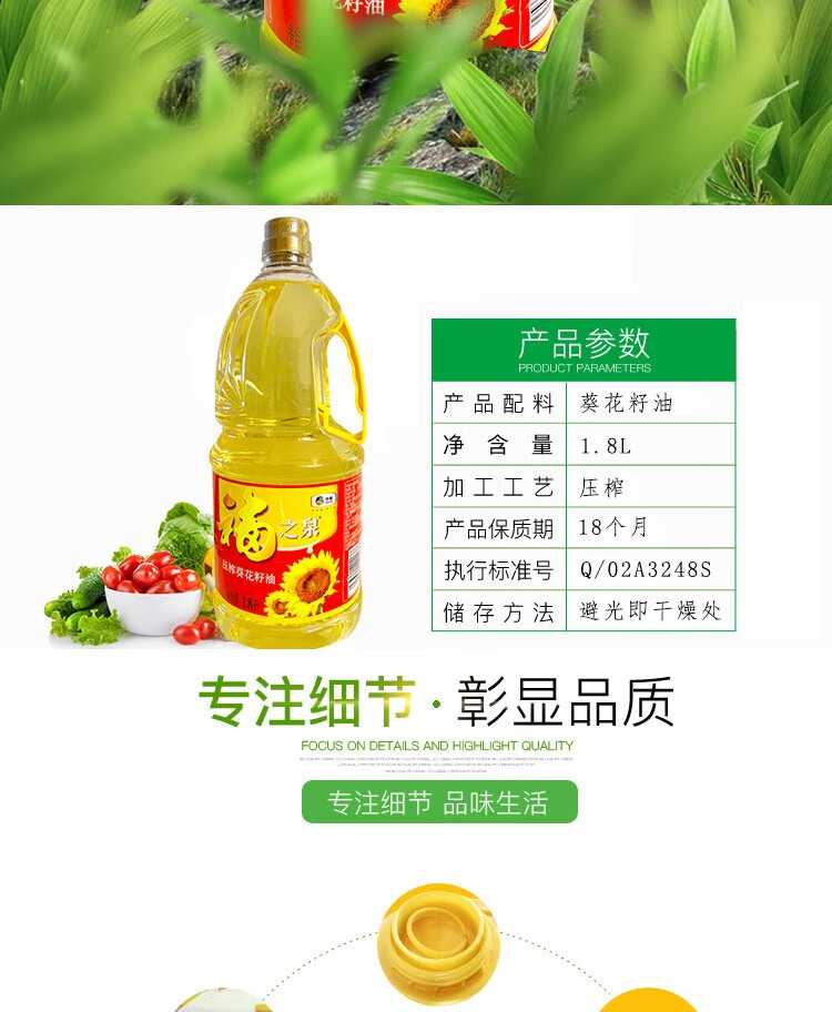 商品名称:中粮 福之泉压榨葵花籽油 1.8L