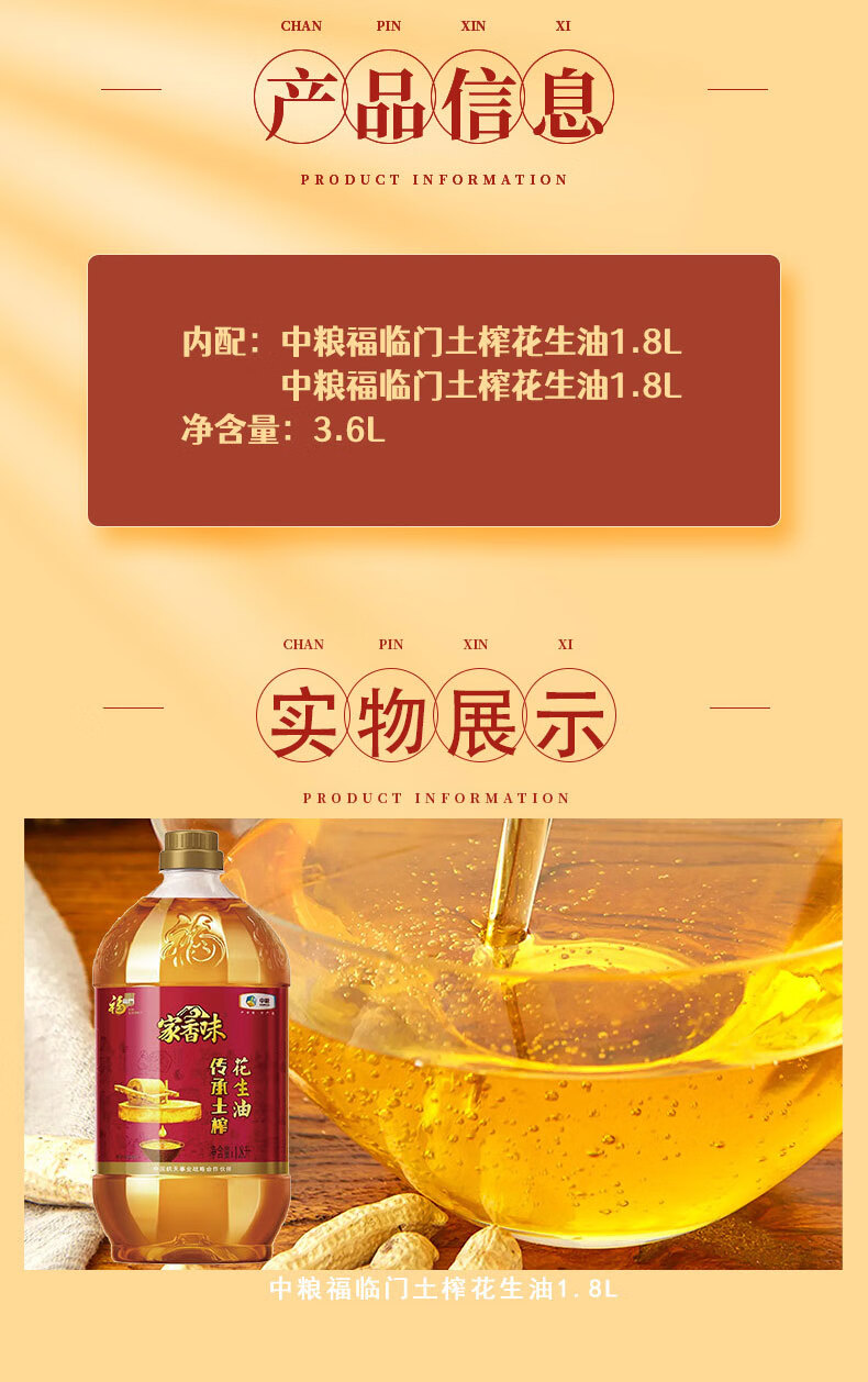 包装清单 :中粮福临门土榨花生油1.8L*2