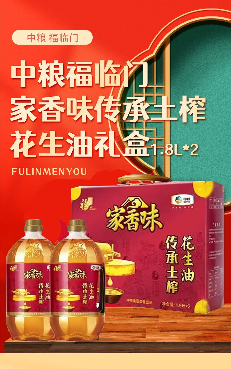 商品名称:中粮 福临门家香味传承土榨花生油礼盒 1.8L*2