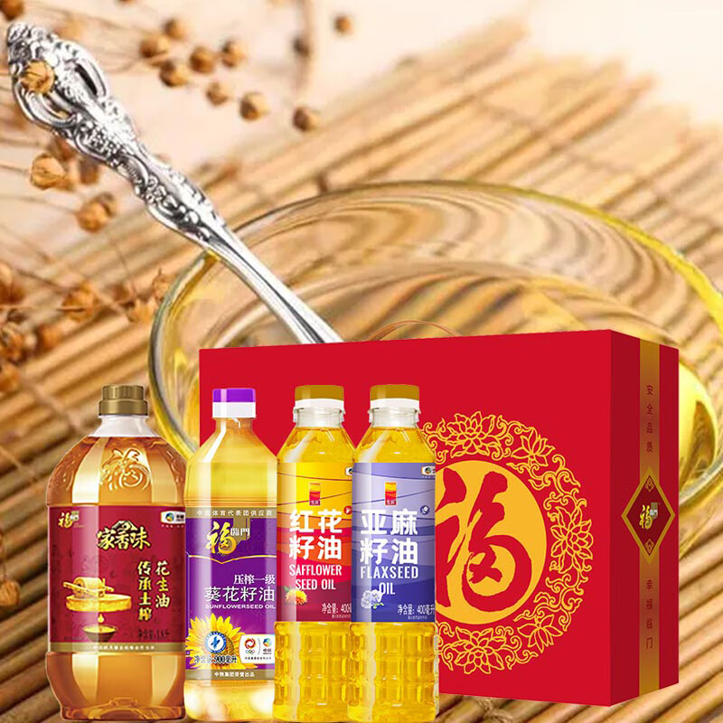 中粮福临门土榨花生油1.8L 中粮·福临门葵花籽油900ml 中粮·悦润亚麻籽油400ml 中粮·悦润红花籽油400ml