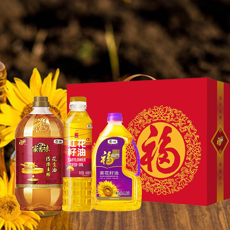 包装清单 :中粮福临门土榨花生油1.8L 中粮·福临门葵花籽油1.8L 中粮·悦润红花籽油400ml