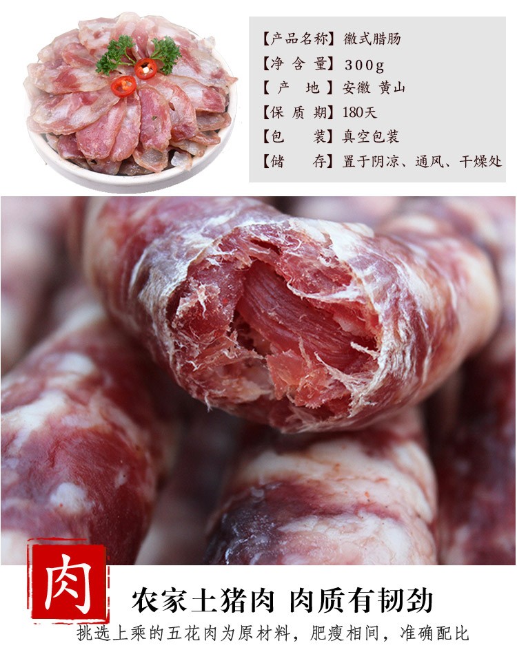 商品名称:长岭尖 腊肠300g袋装