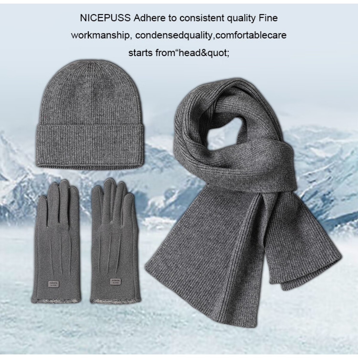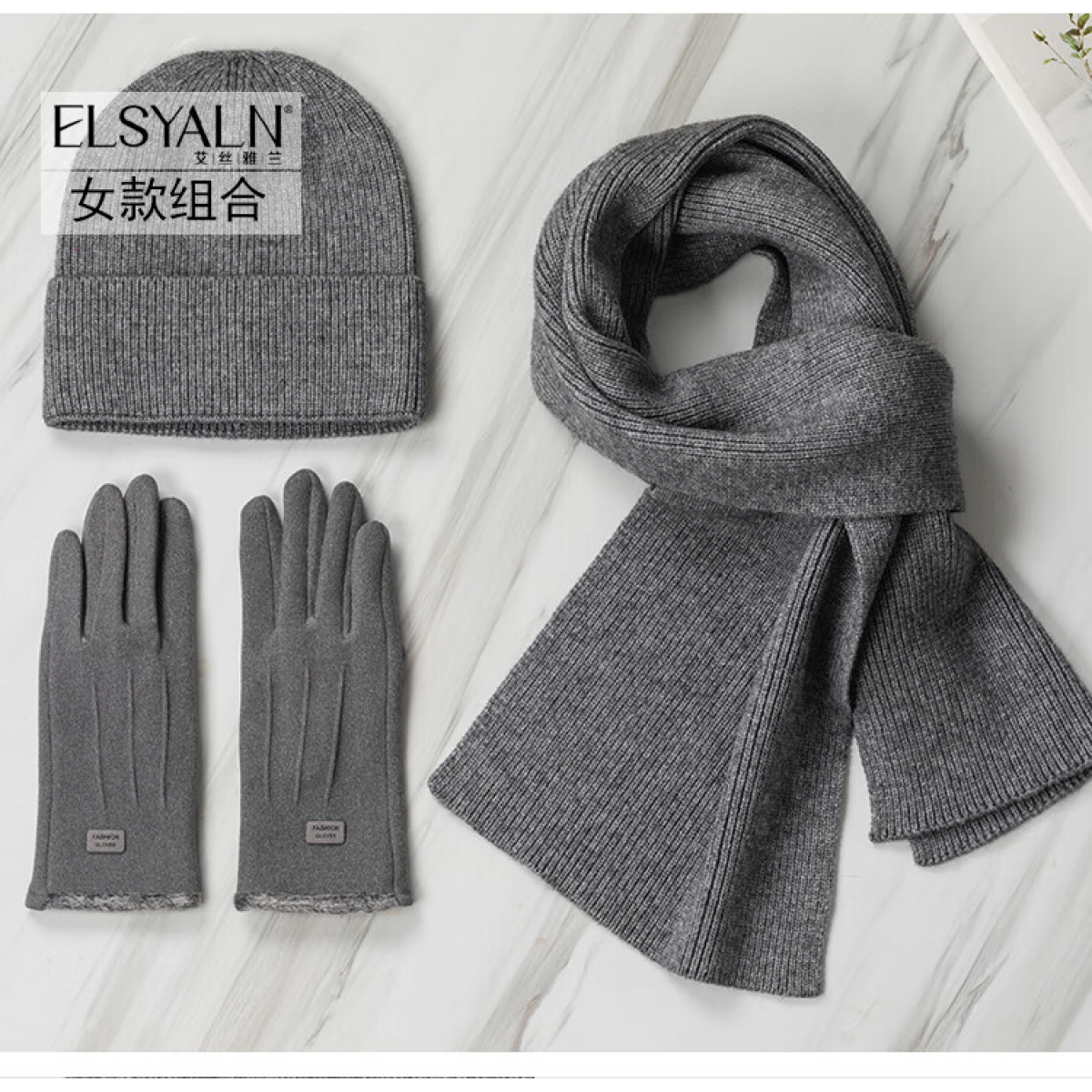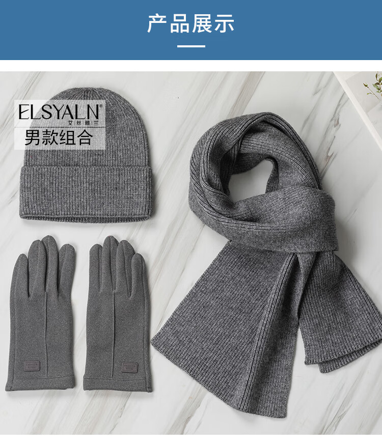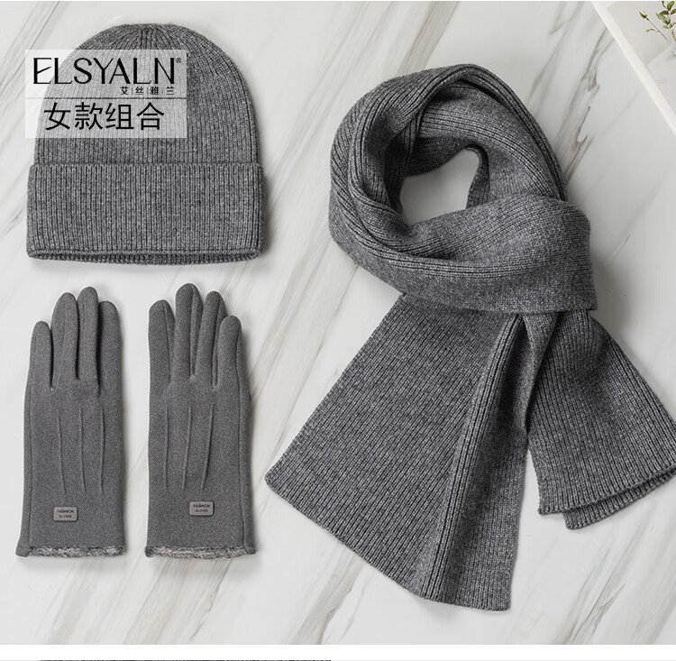 配置清单 :针织围巾+针织帽+灰色触屏手套