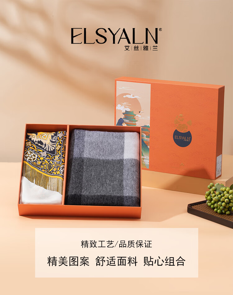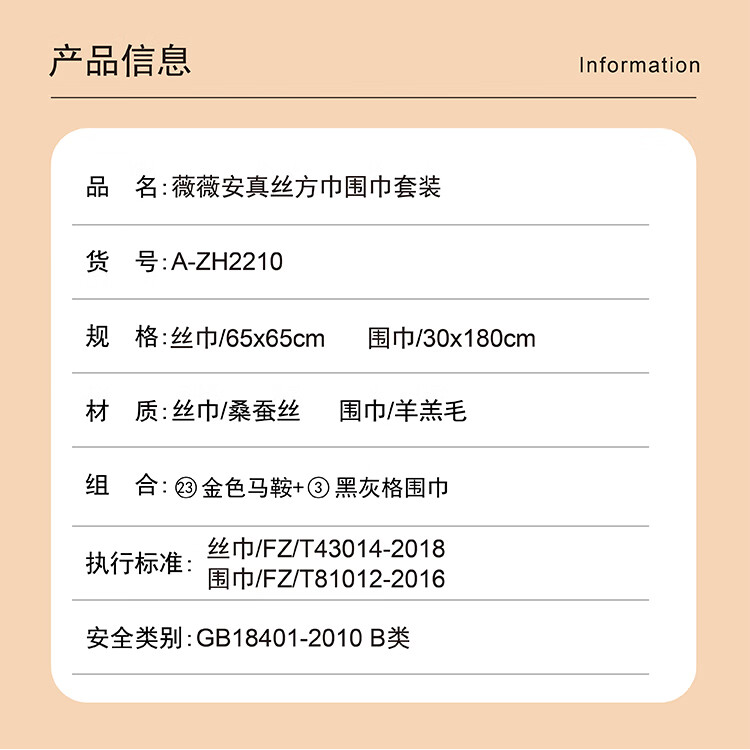 产品材质 :丝巾/100%桑蚕丝 围巾/100%羊羔毛