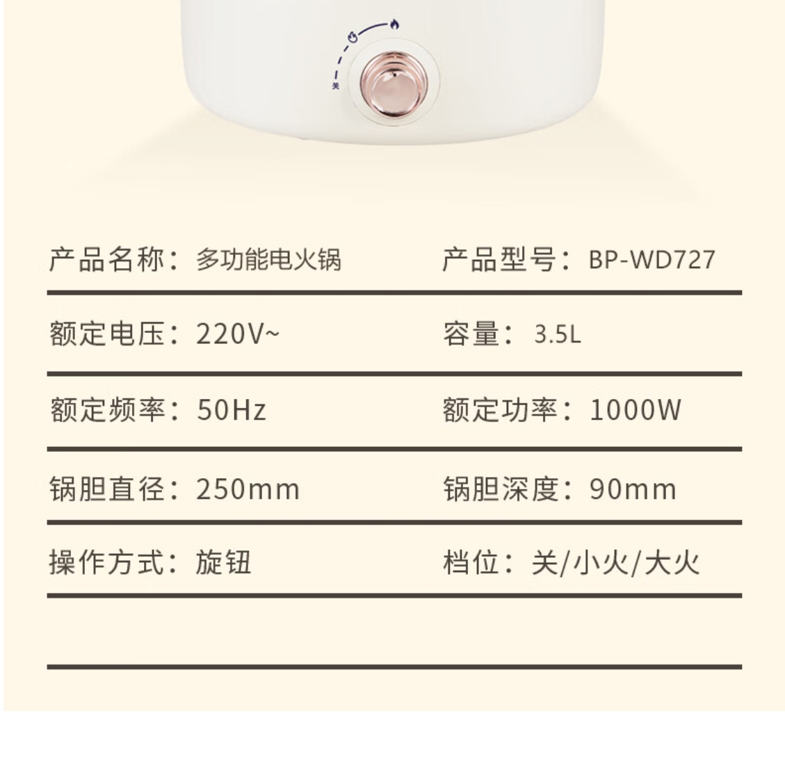 商品名称:豹牌 多功能电火锅 3.5L BP-WD727