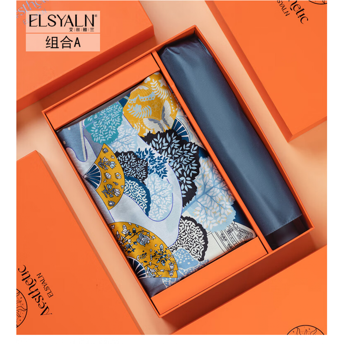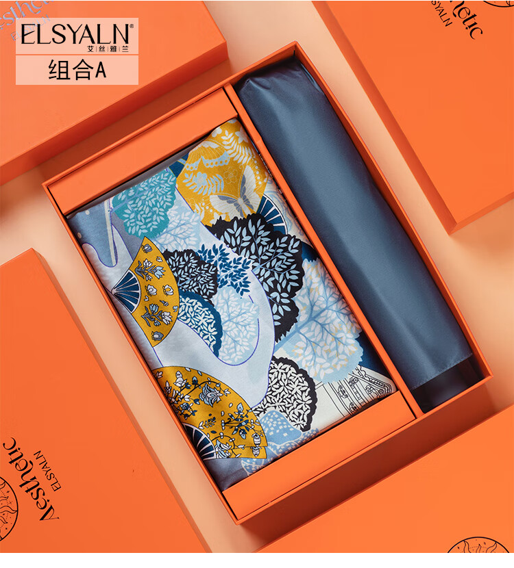 艾丝雅兰 绮梦真丝方巾三折伞套装 A-ZH2200