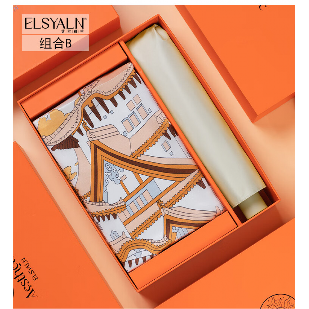 商品名称:艾丝雅兰 绮梦真丝方巾三折伞套装 A-ZH2200