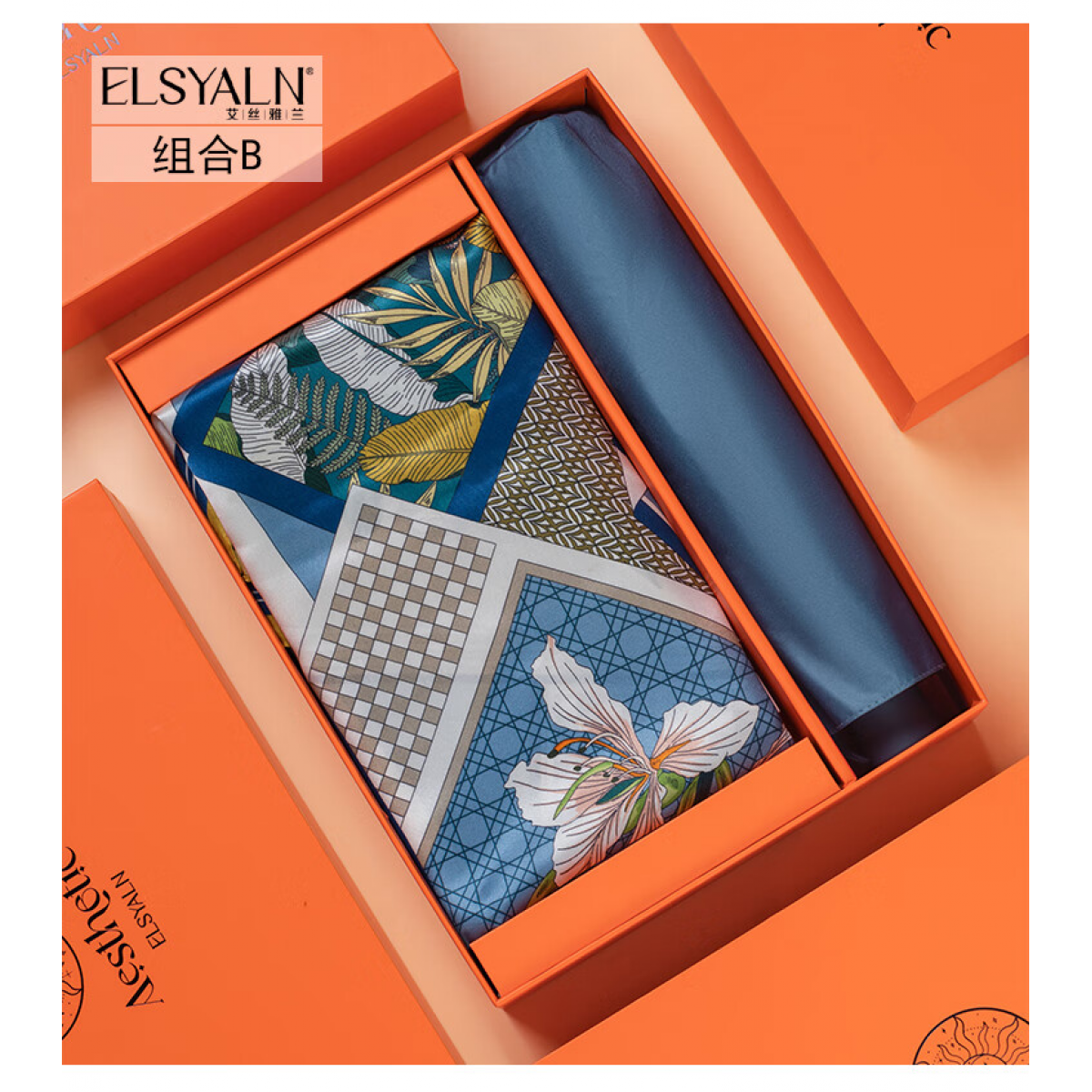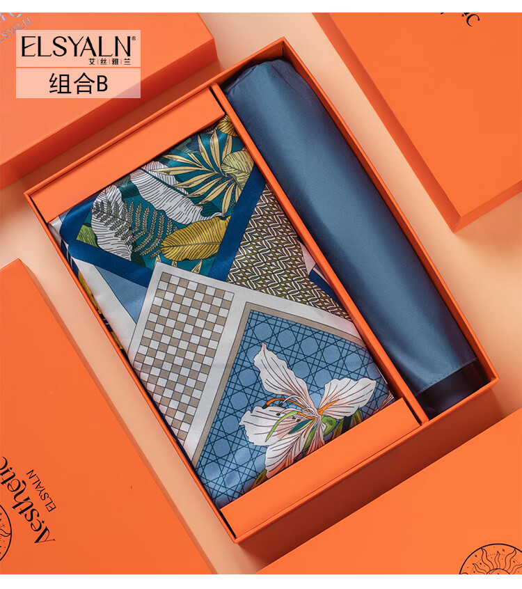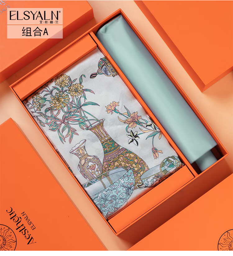 艾丝雅兰 薇薇安真丝方巾三折伞套装 A-ZH2201