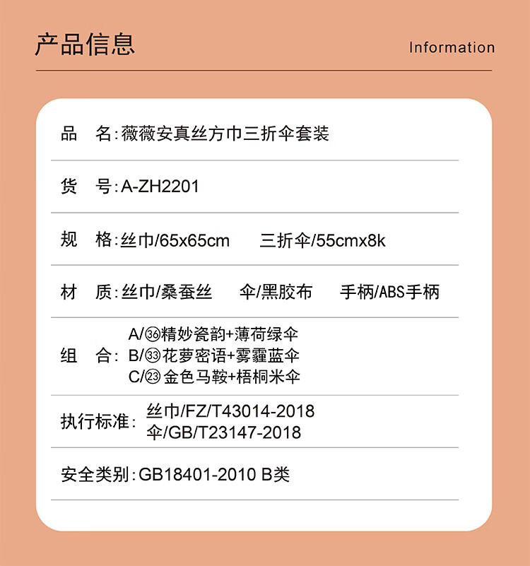规格尺寸 :丝巾/65x65cm 三折伞/55cmx8K