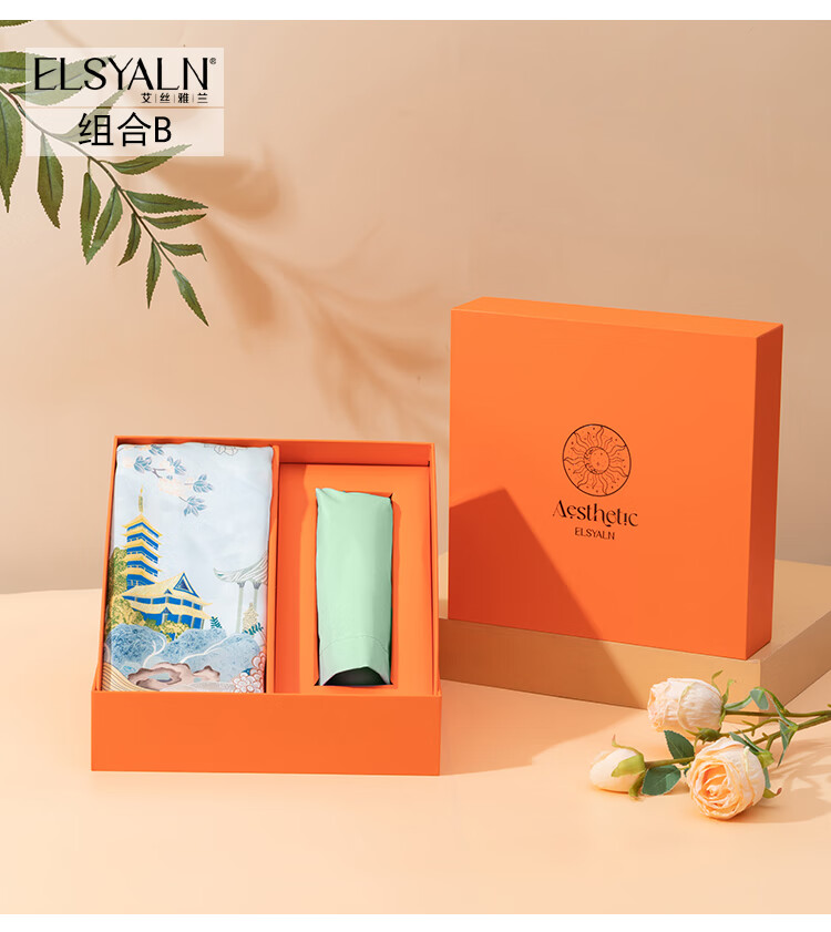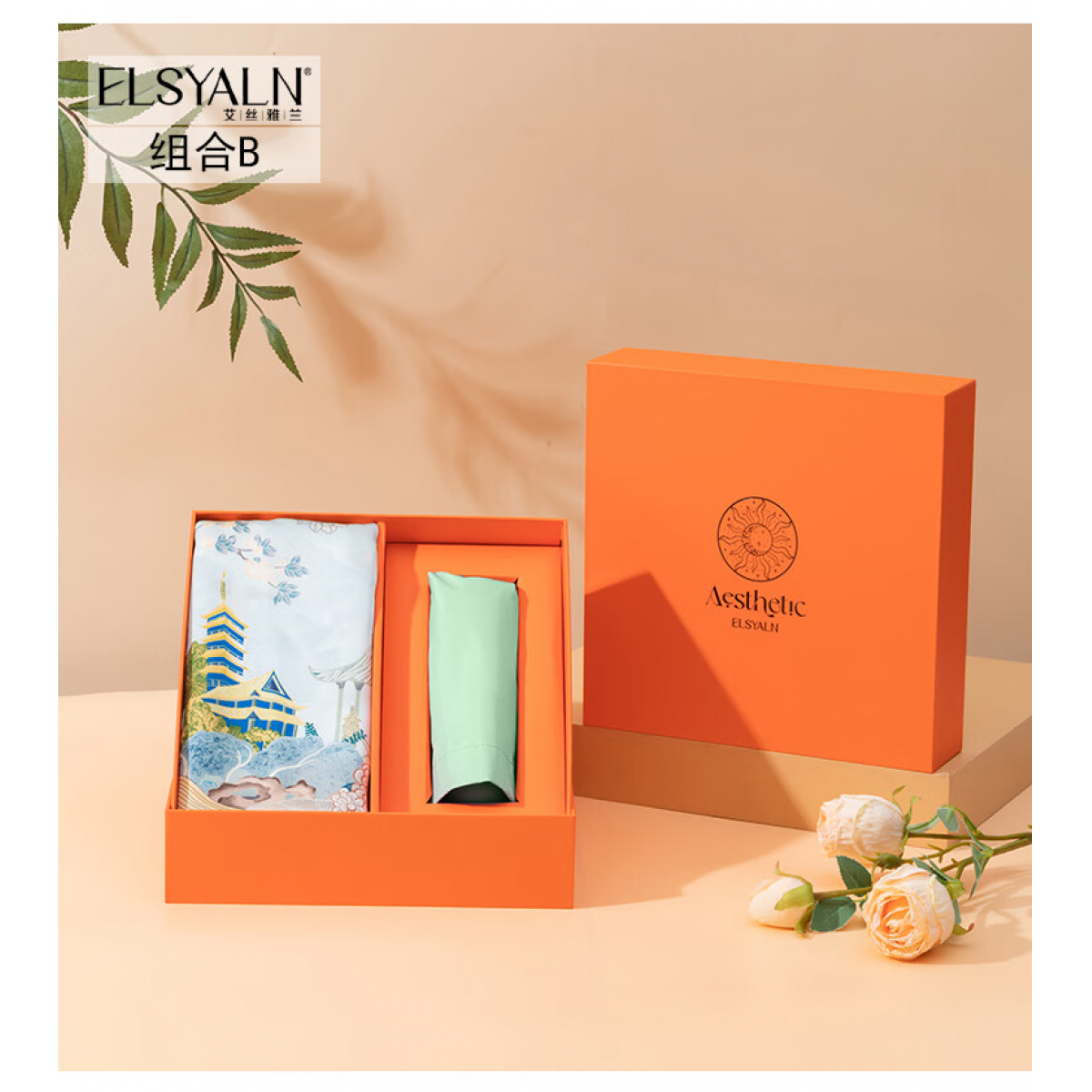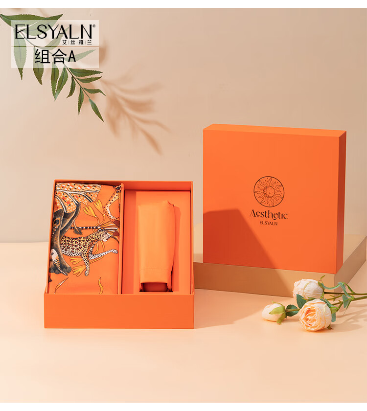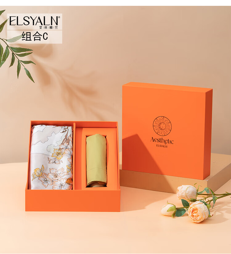 艾丝雅兰 薇薇安真丝方巾五折伞套装 A-ZH2202