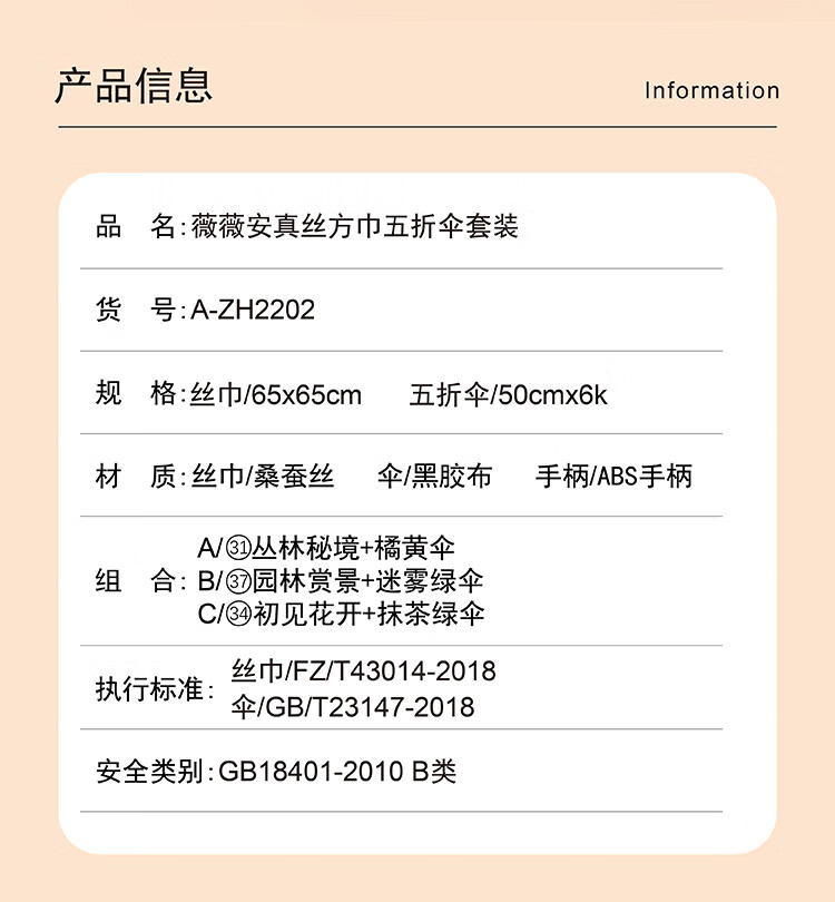 规格尺寸 :丝巾/65x65cm 五折伞/50cmx6K
