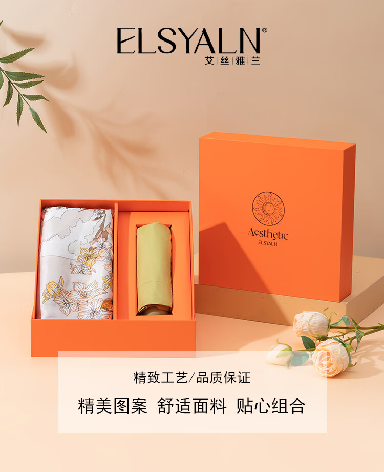 商品名称:艾丝雅兰 薇薇安真丝方巾五折伞套装 A-ZH2202
