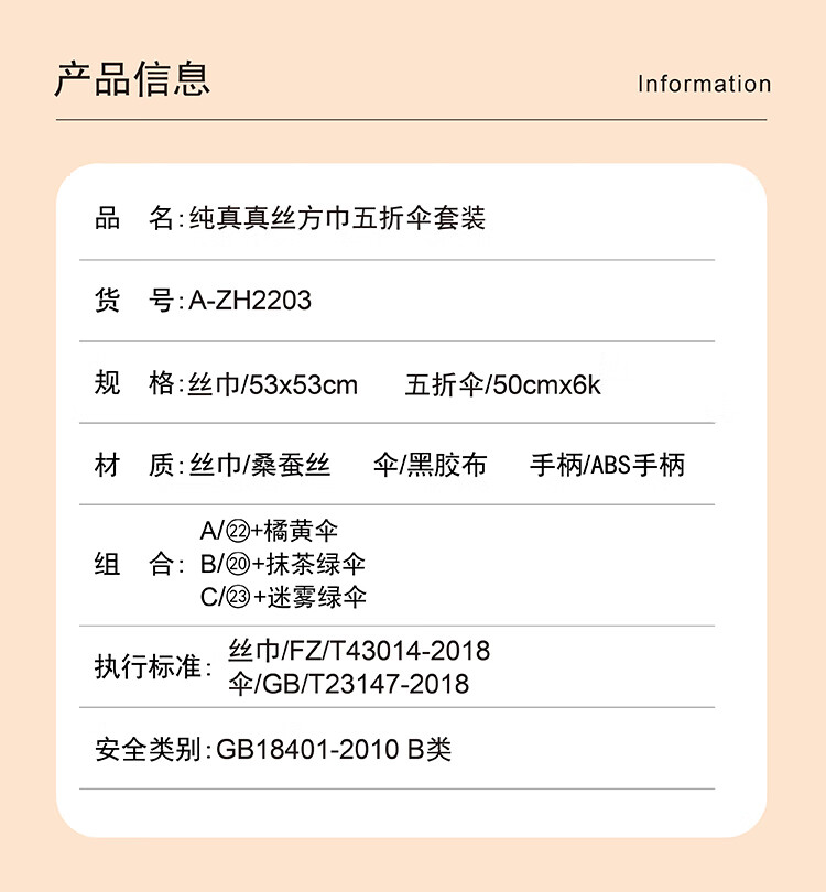 规格尺寸 :丝巾/53x53cm 五折伞/50cmx6K