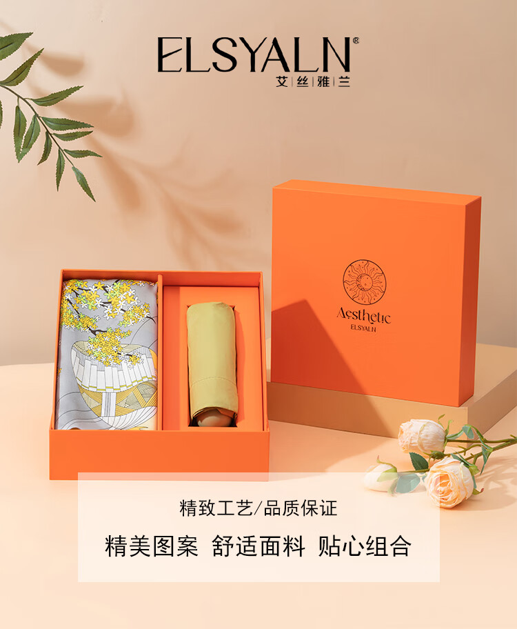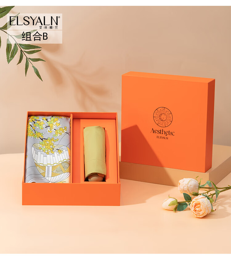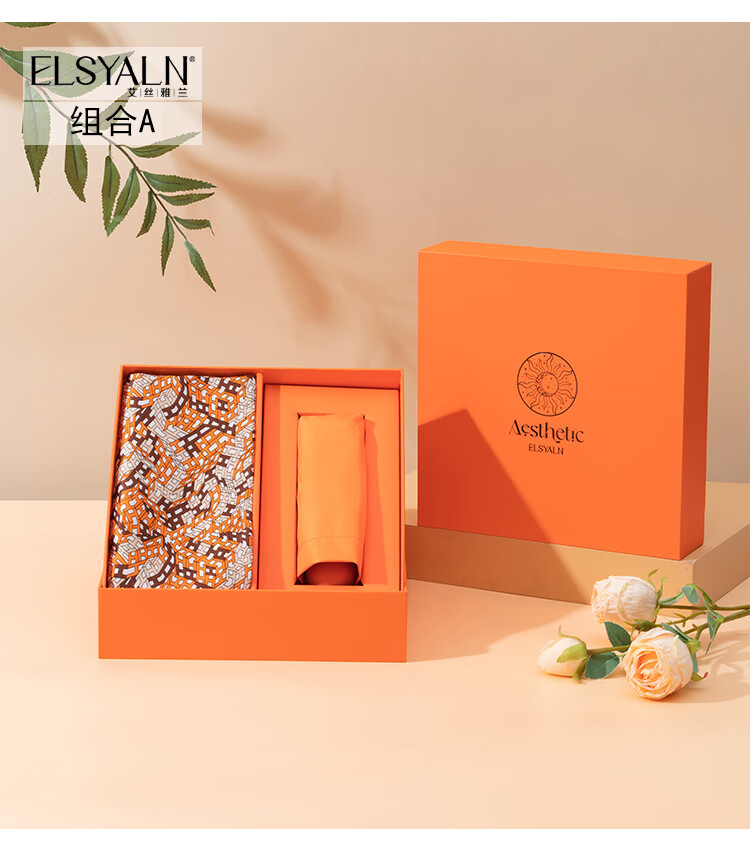 艾丝雅兰 纯真真丝方巾五折伞套装 A-ZH2203