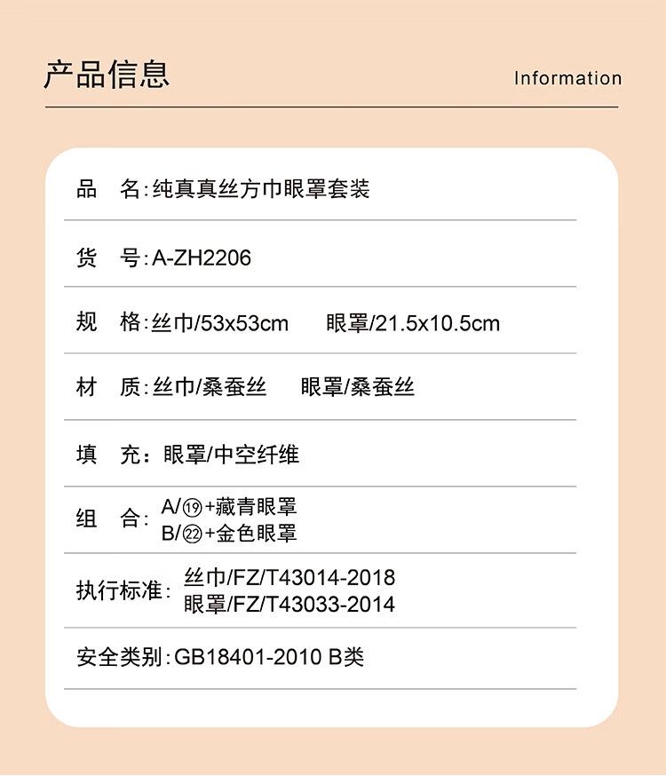 规格尺寸 :丝巾/53x53cm /眼罩/21.5x10.5cm