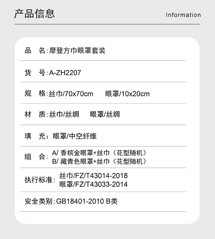 规格尺寸 :丝巾/70x70cm 眼罩/10x20cm