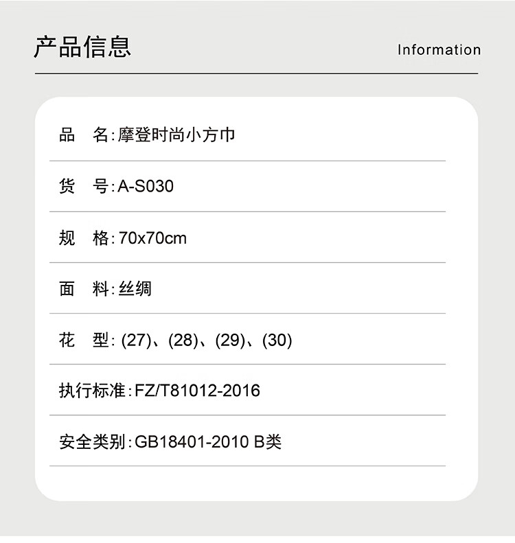 商品名称:艾丝雅兰 摩登时尚小方巾 A-S030 70x70cm