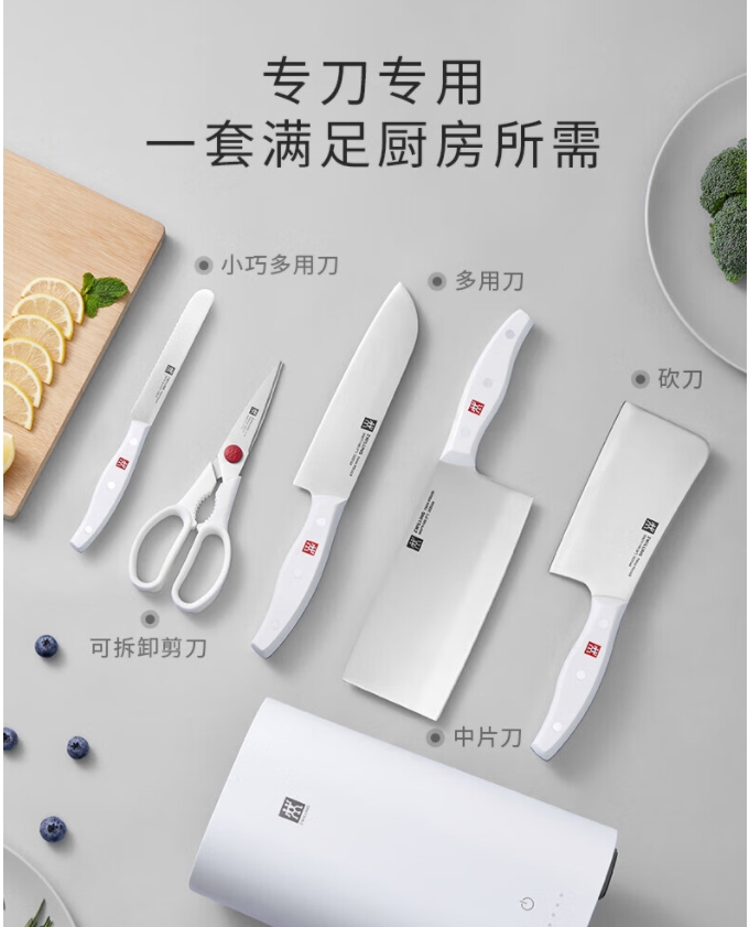 商品名称:双立人 Twin Point S 除菌刀架刀具 6件套(珍珠白) 1033103