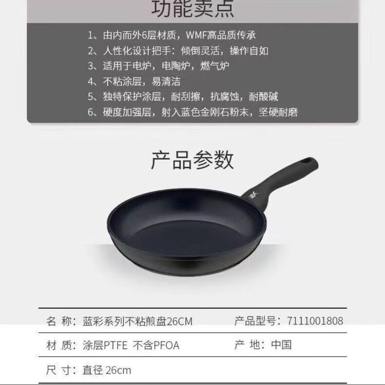 商品名称:福腾宝(WMF)篮彩系列无盖不粘煎盘(26cm)7111001808