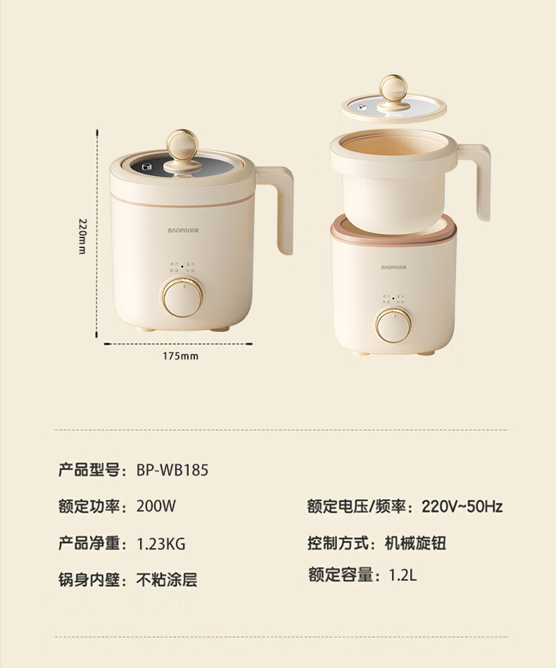 豹牌 分体式电煮锅(MINI电饭锅)1.2L BP-WB185
