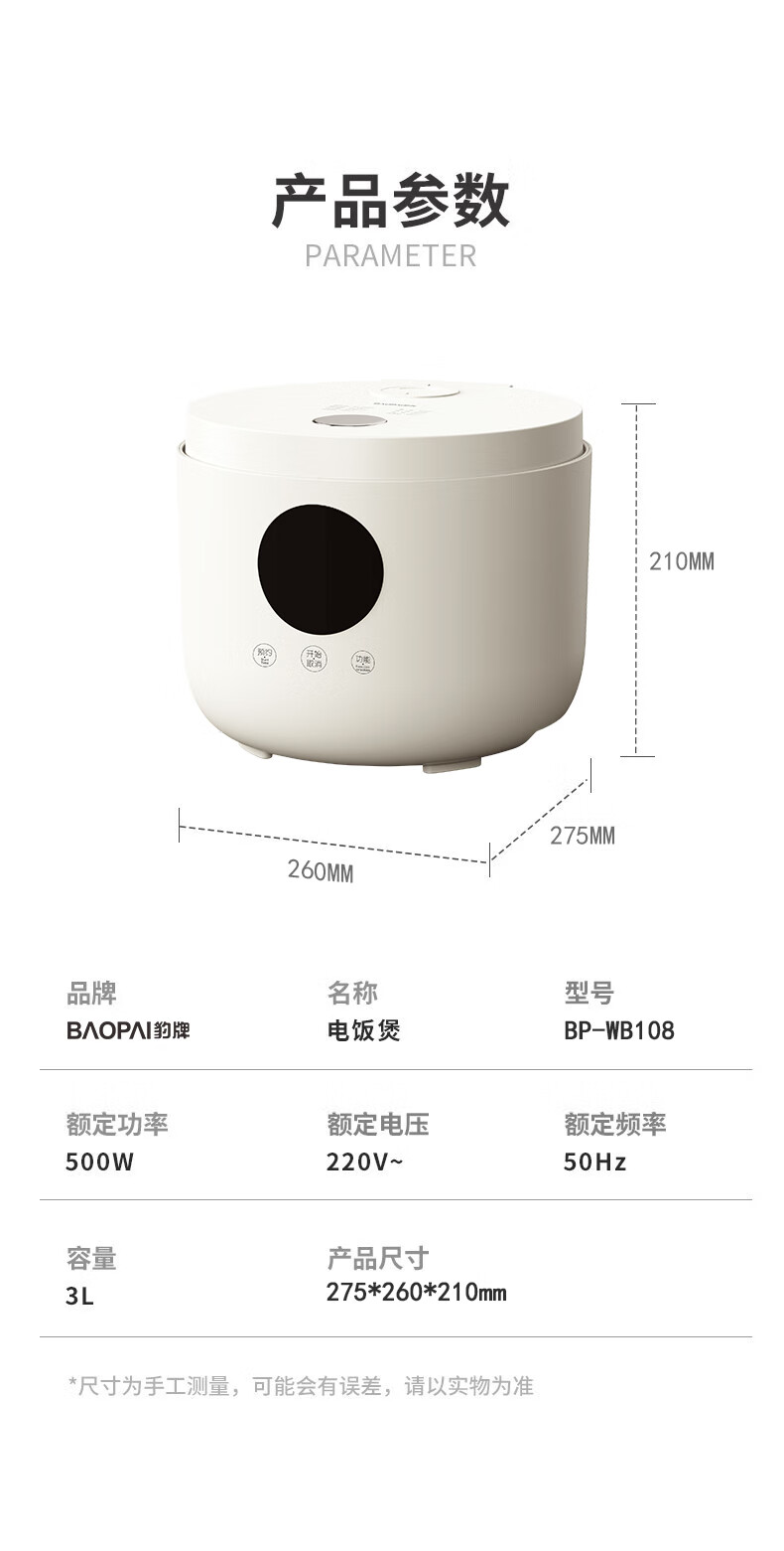 商品名称:豹牌 多功能电饭煲 3L BP-WB108