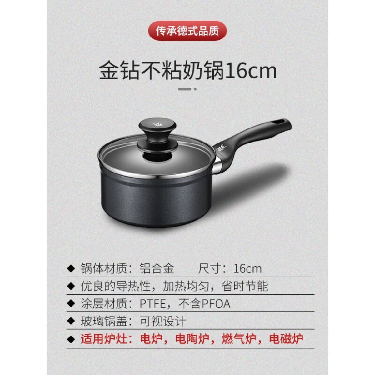 商品名称:福腾宝(WMF) 金钻系列不粘奶锅(16cm)7111002157