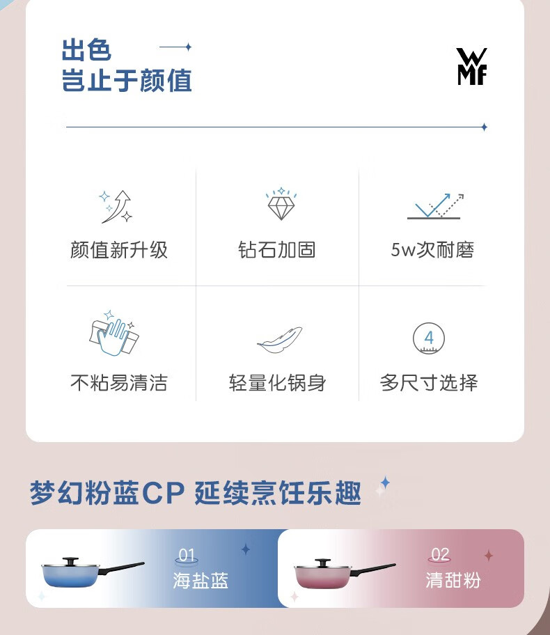 福腾宝(WMF)星耀系列不粘煎锅配锅铲26cm(渐变粉)0525264021