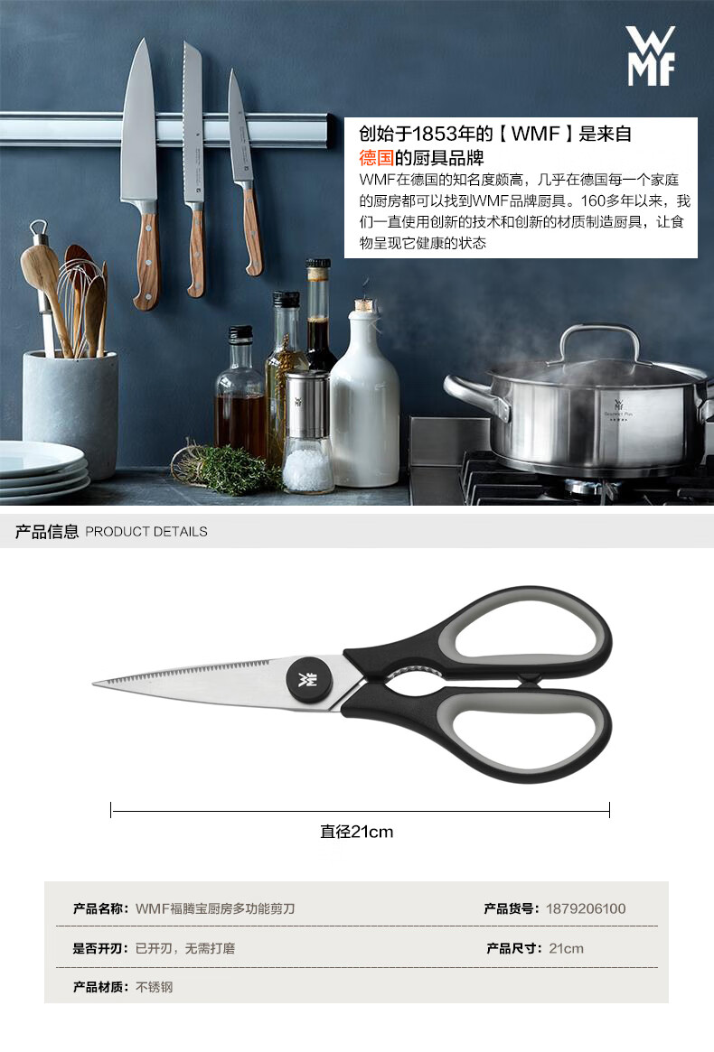 商品名称:福腾宝(WMF)黑色厨房多功能剪刀 1879206100