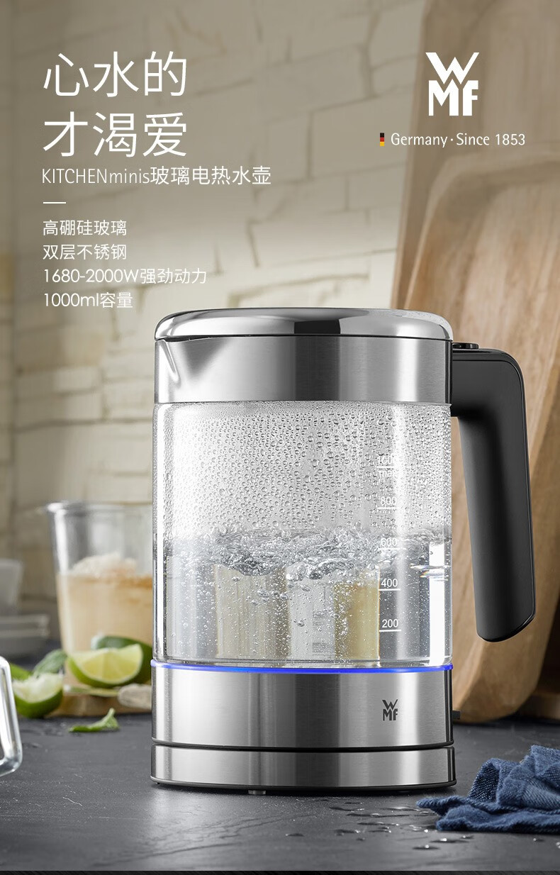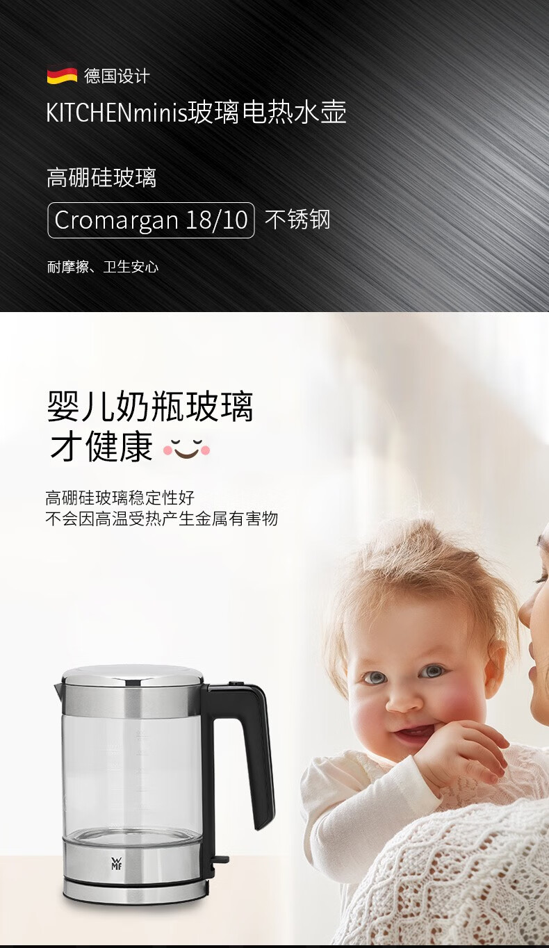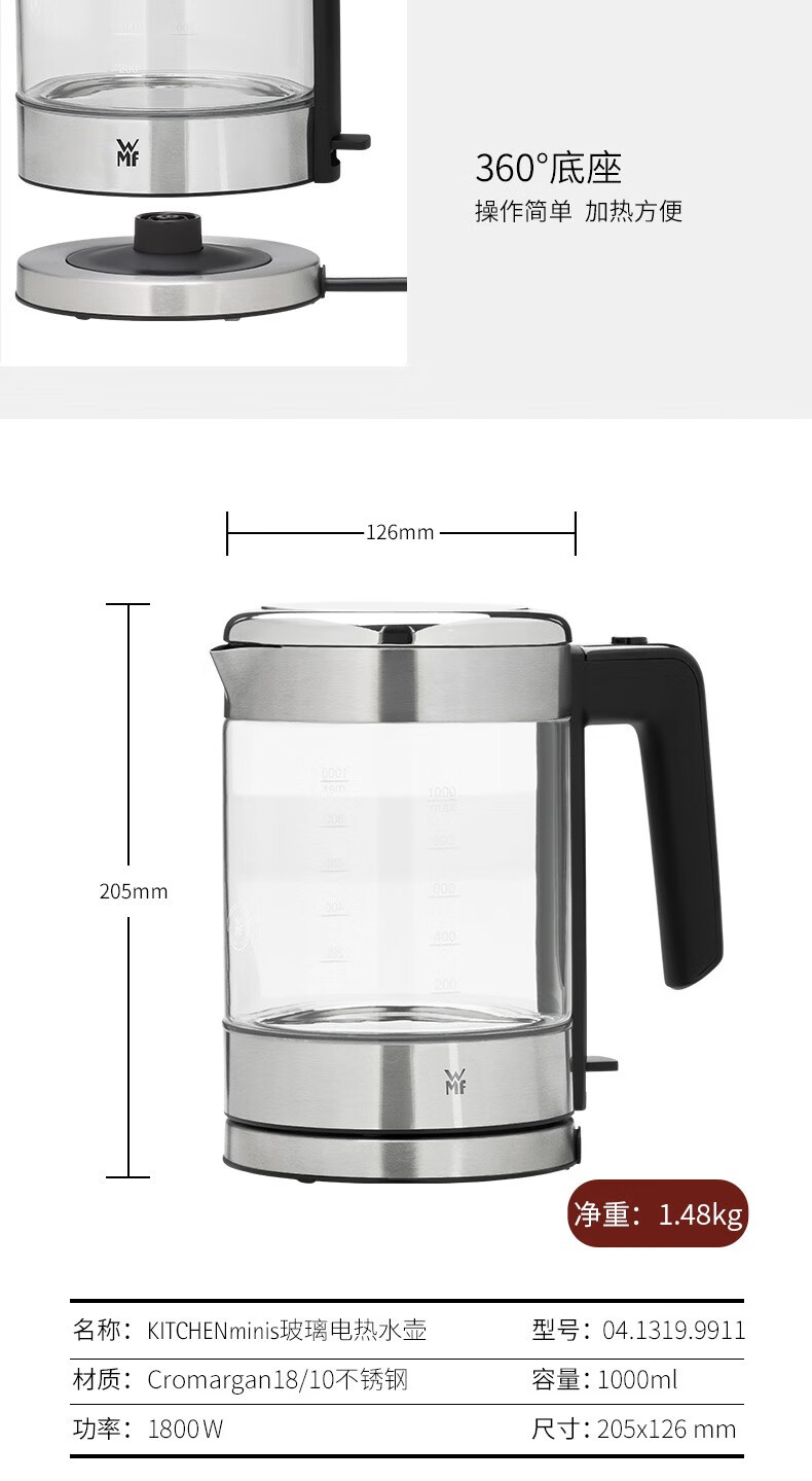 商品名称:福腾宝(WMF)KITCHENminis 1.0L玻璃电热水壶 0413199911