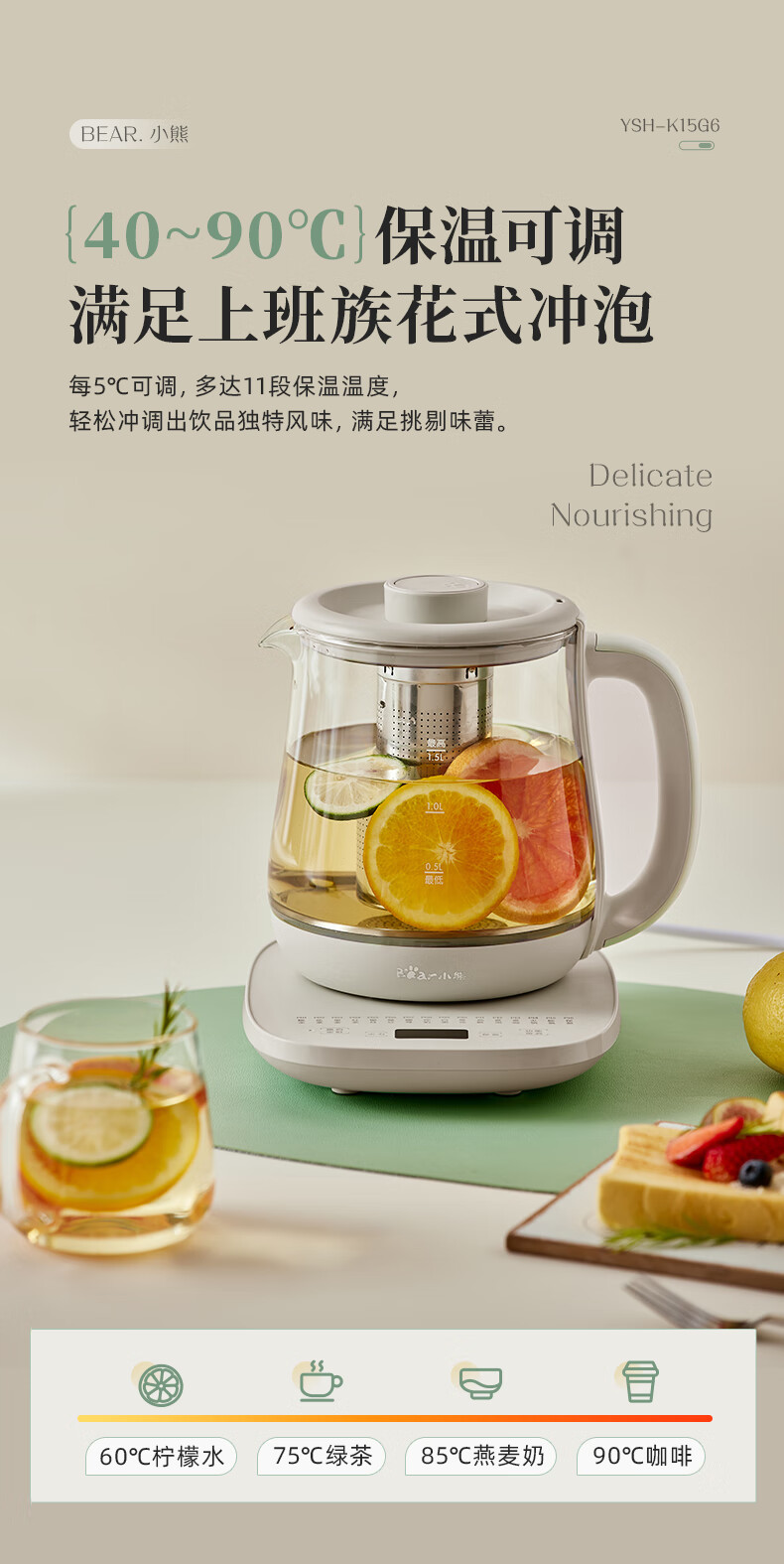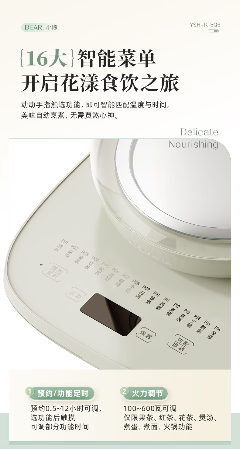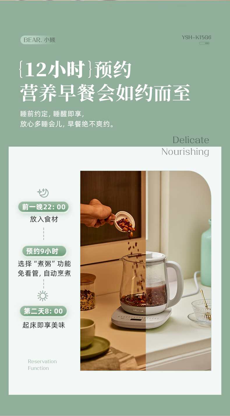 商品名称:小熊(Bear)养生壶 YSH-K15G6 1.5 L(带滤网)包销款