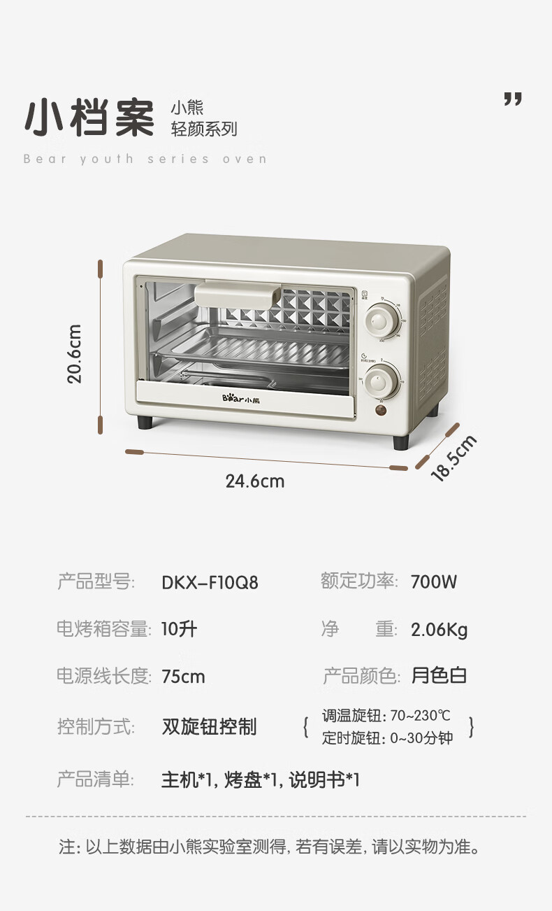 商品名称:小熊(Bear)电烤箱 10L DKX-F10Q8 包销款