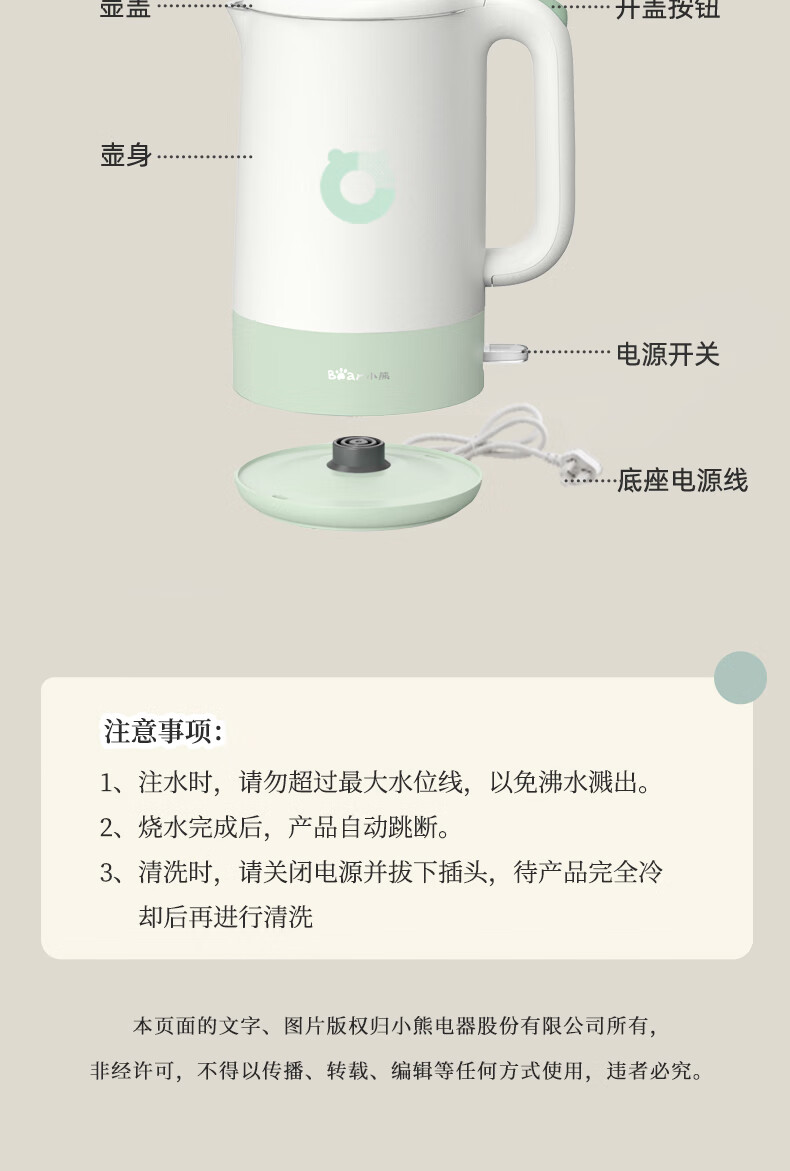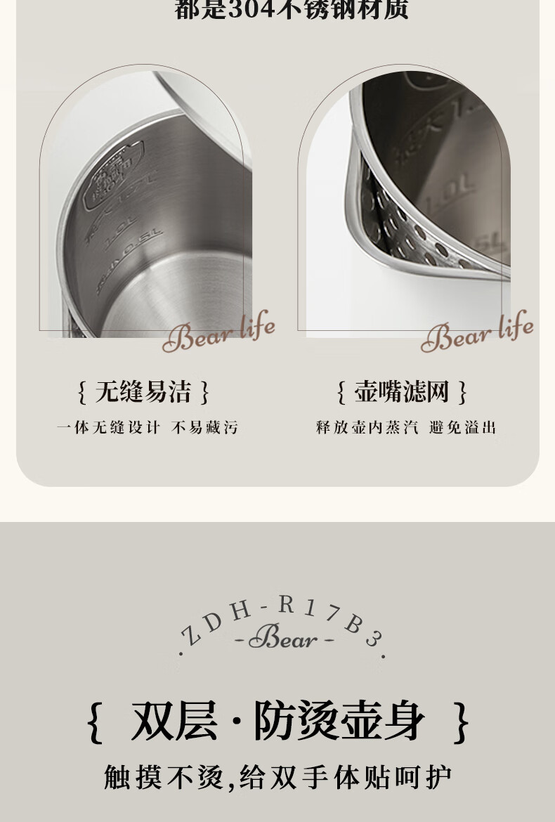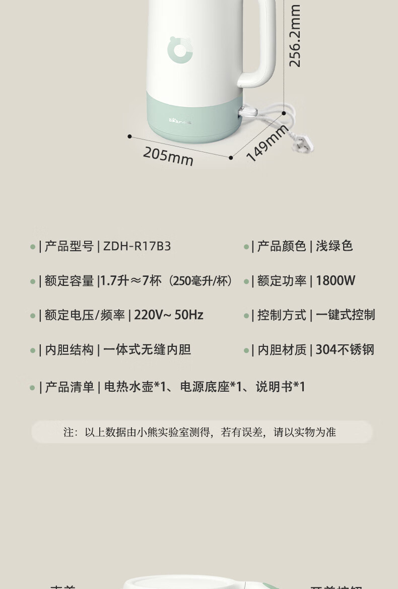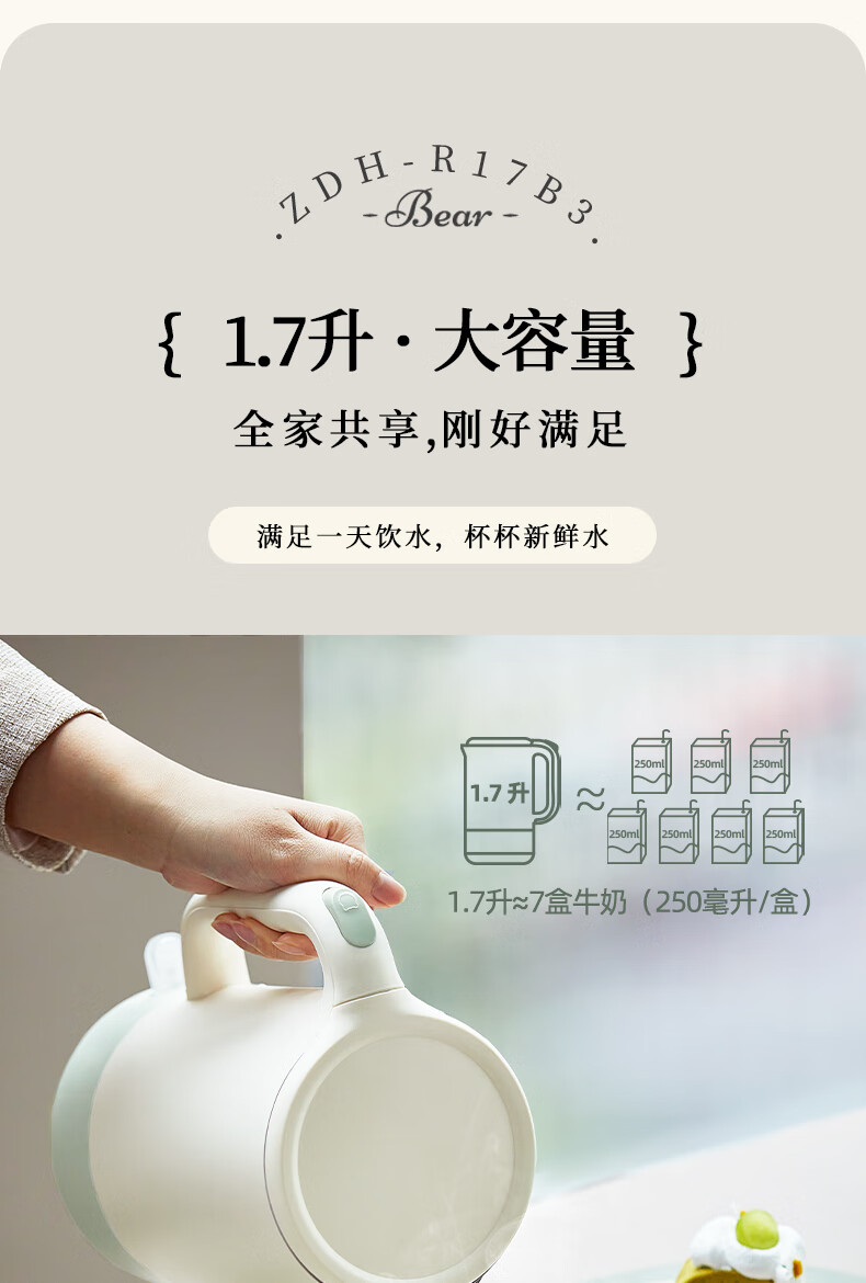 商品名称:小熊(Bear)电热水壶 1.7L ZDH-R17B3 包销款