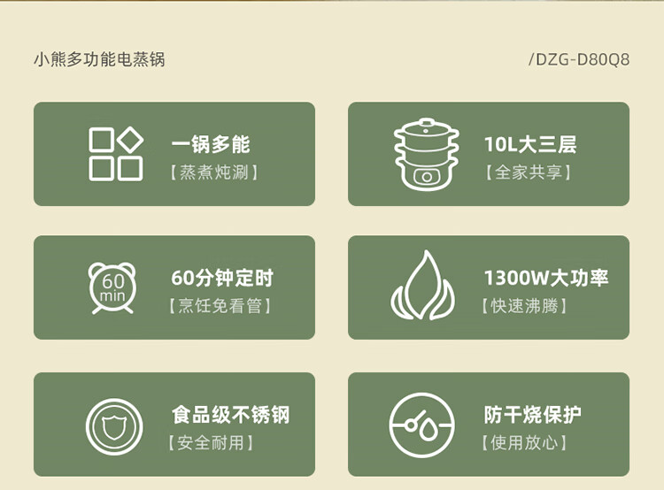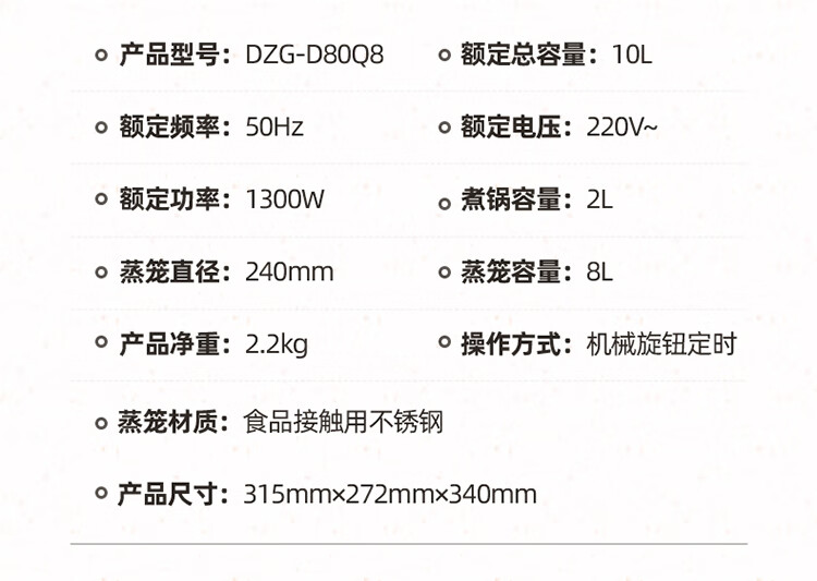 商品名称:小熊(Bear)电蒸锅 10L DZG-D80Q8 包销款