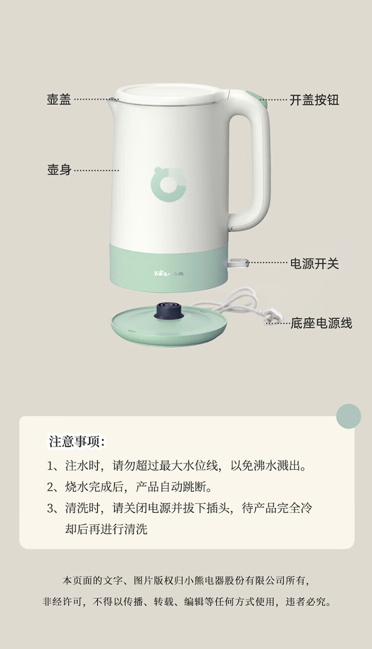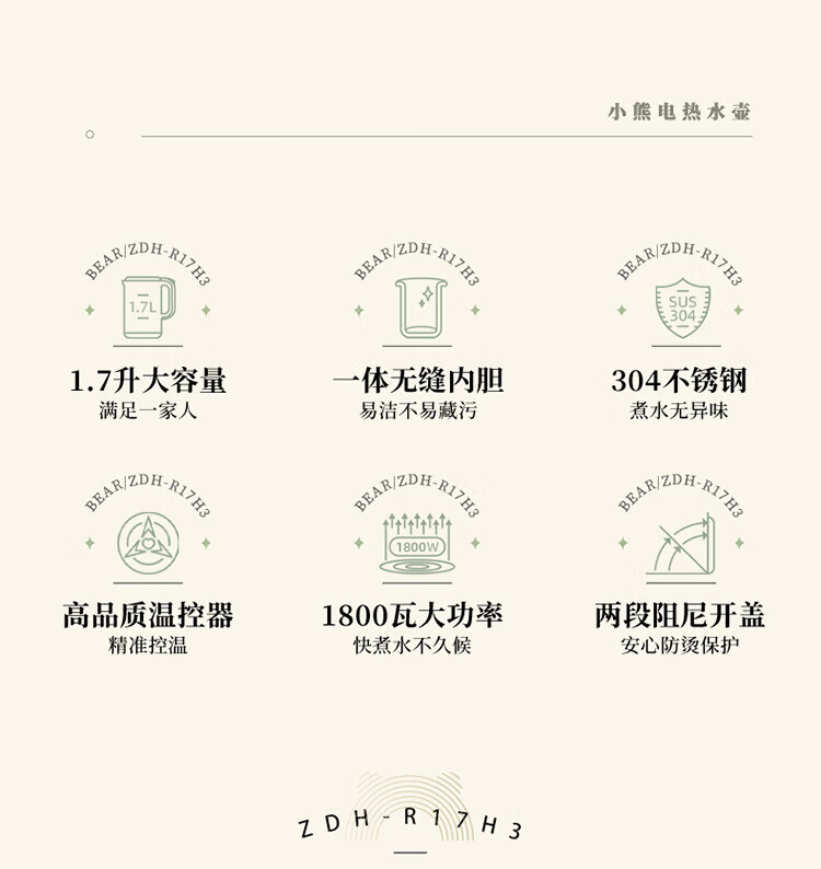 商品名称:小熊(Bear) 电热水壶 1.7L ZDH-R17H3