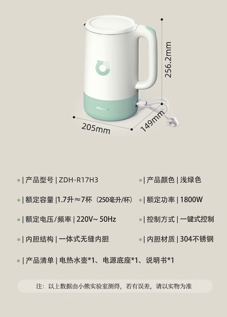 小熊(Bear) 电热水壶 1.7L ZDH-R17H3