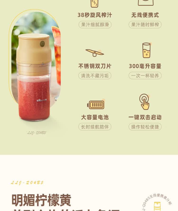 商品名称:小熊(HWM)料理机 榨汁机 300ml LLJ-Q04B5