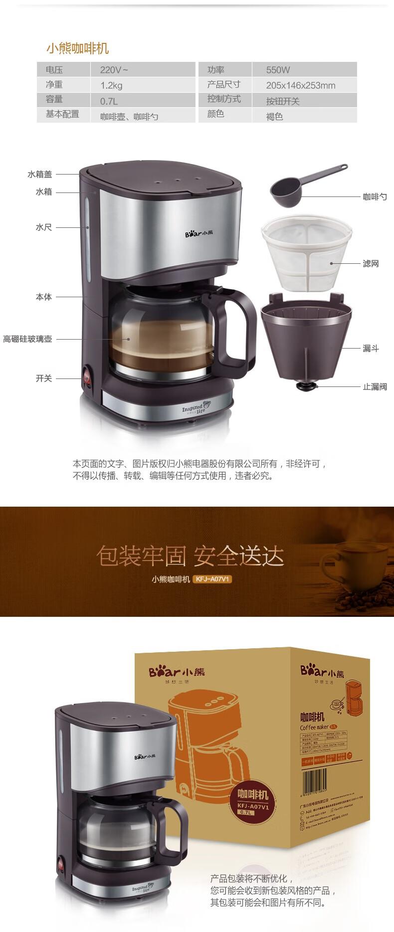 商品名称:小熊(HWM)咖啡机 0.7L KFJ-A07V1