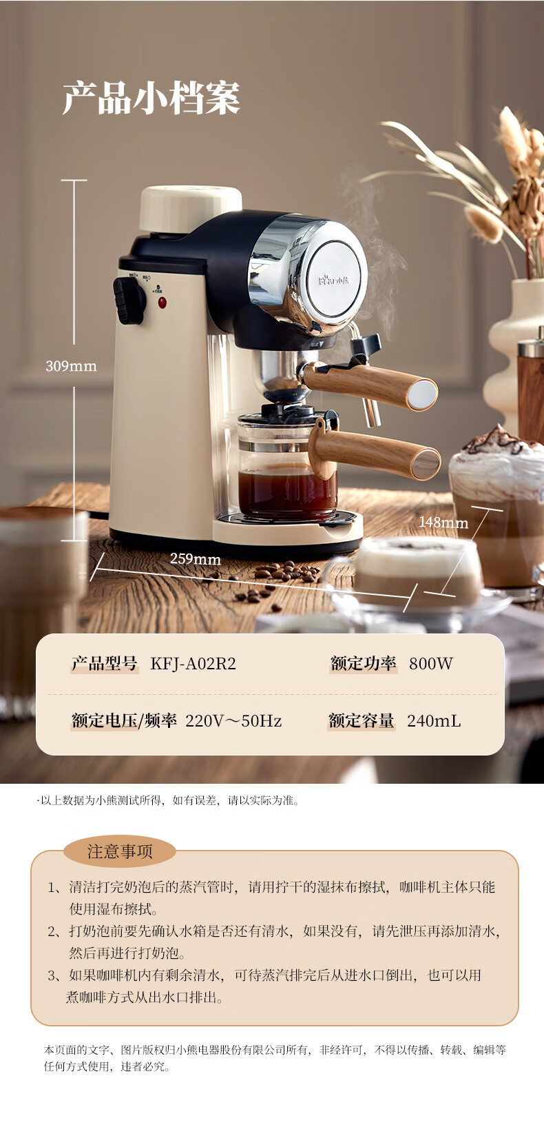 商品名称:小熊(HWM)咖啡机 240ml KFJ-A02R2