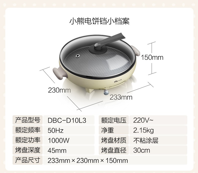 商品名称:小熊(Bear) 电饼铛 DBC-D10L3