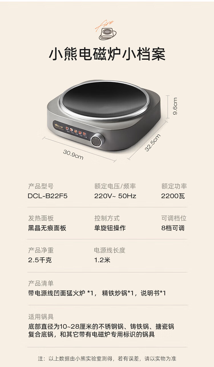 商品名称:小熊(Bear)电磁炉 DCL-B22F5 带铁锅(32cm)
