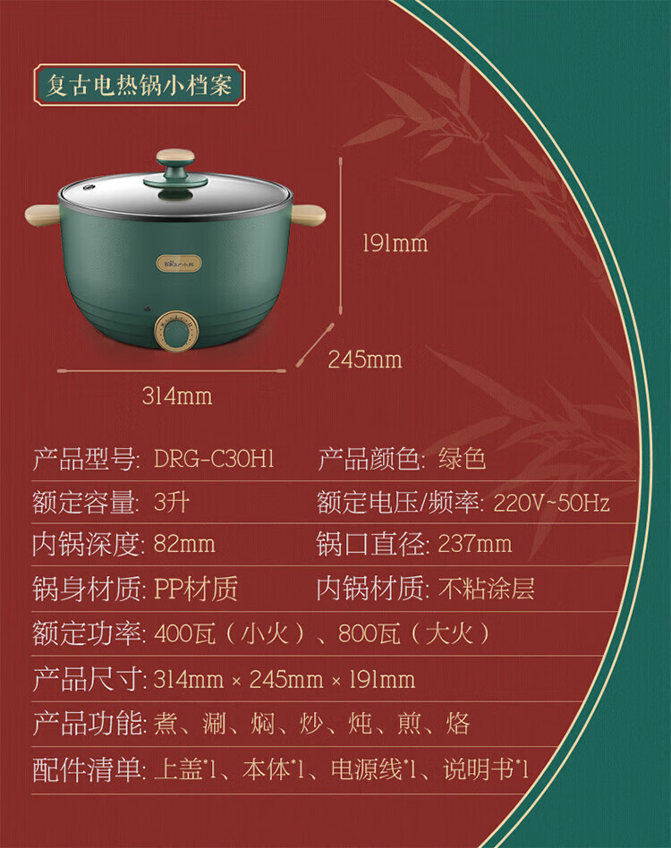 商品名称:小熊(Bear)电热锅 3L DRG-C30H1