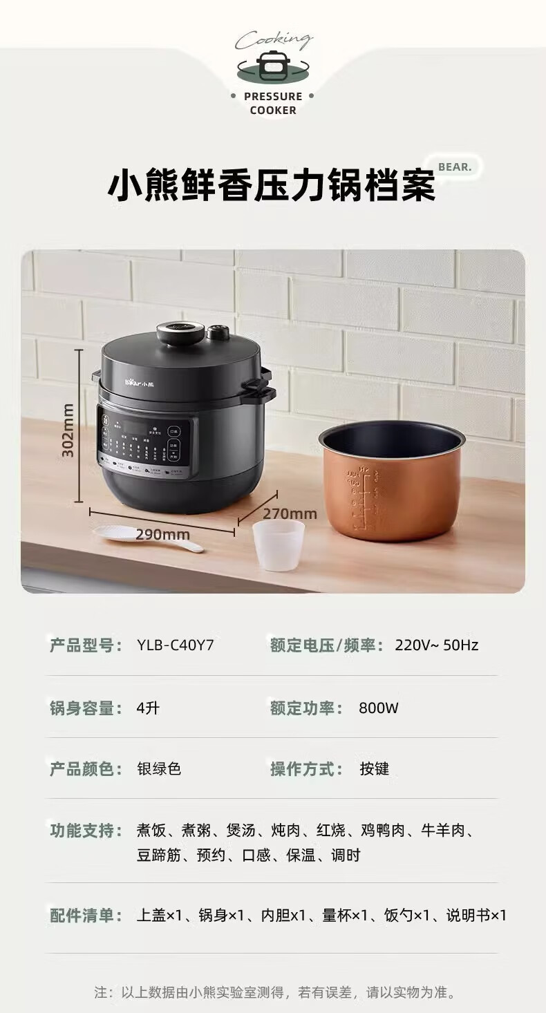 商品名称:小熊(Bear)压力煲 4L YLB-C40Y7