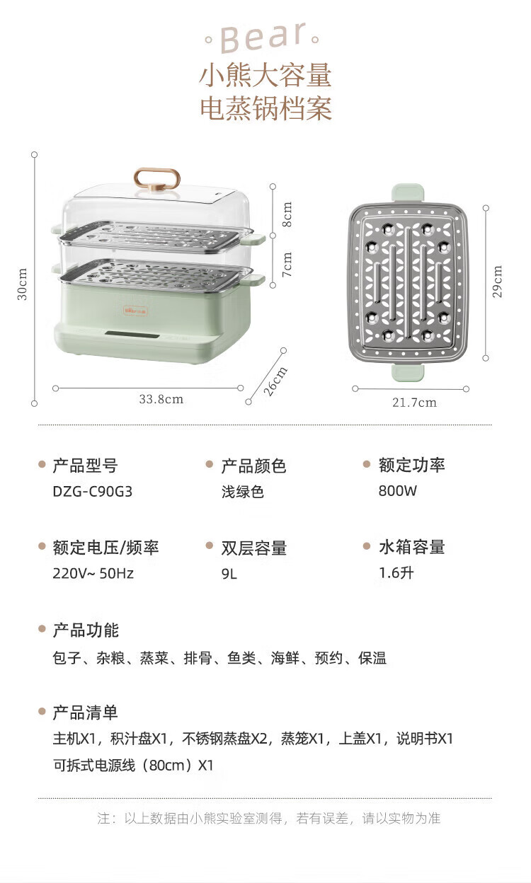 商品名称:小熊(Bear)电蒸锅 9L DZG-C90G3